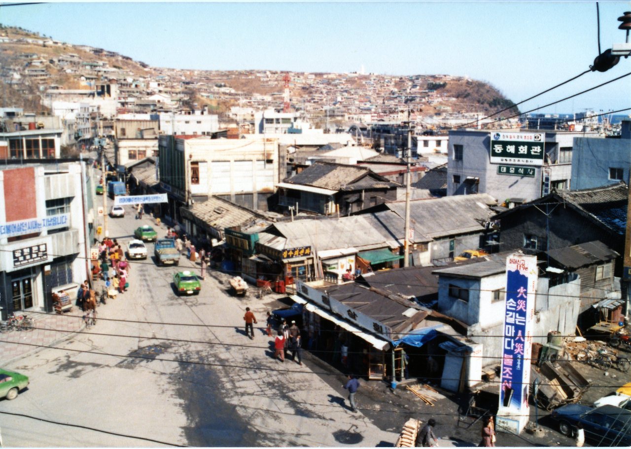 묵호에서 제일 인상 깊었던 일은 통행금지 해제 사이렌이 불기 무섭게 안묵호 어판장에서 수십 대의 리어카가 줄지어 지나갔어요. 그때만 해도 비포장도로인데, 날 오징어나 노가리를 리어카에 가득 싣고 향로동, 부곡동, 대원사 쪽의 덕장이나 건조공장으로 갔어요. 리어카 수십 대 지나가면 그 뒤로 지게꾼들이 바수쿠리(싸리나무로 만든 소쿠리)에 물이 뚝 뚝 떨어지는 오징어, 노가리, 명태를 지고 뒤따랐지요. 새벽부터 밤까지 하루 종일 콤코무리한 오징어, 노가리 냄새에다 검은 탄가루가 풀풀 날리는 게 당시 묵호였지요.
