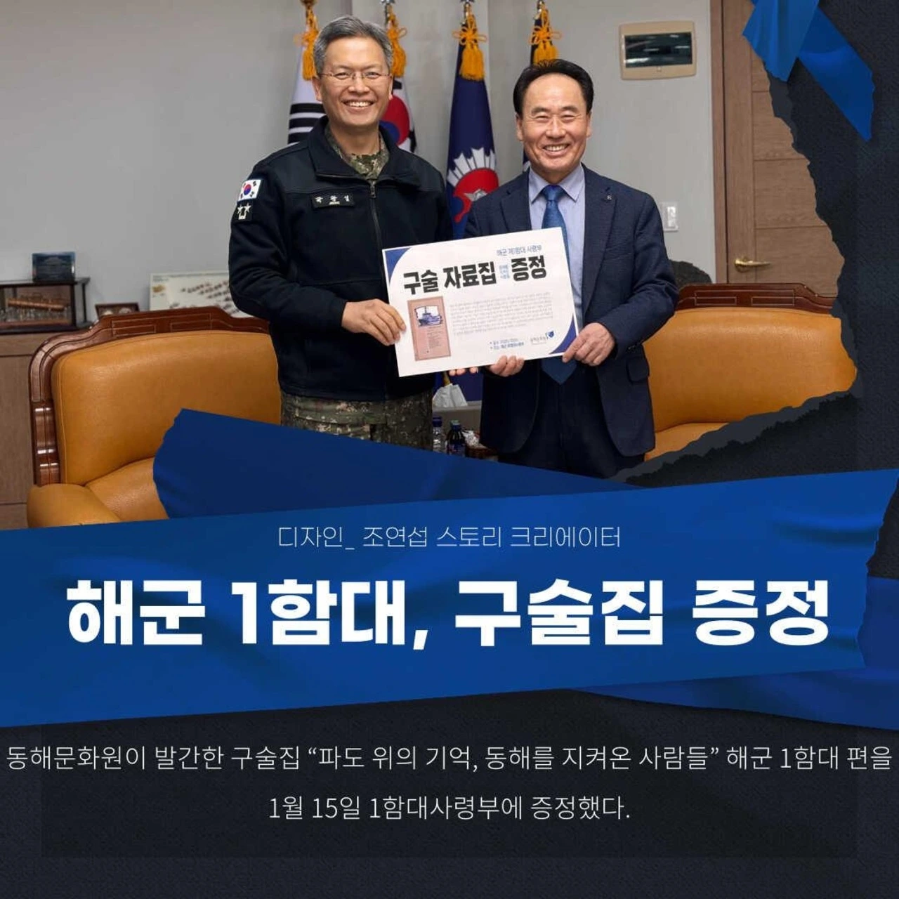 곽광섭 사령관은 “구술집은 해군과 동해시민이 함께 걸어온 역사를 돌아보고, 앞으로의 협력 관계를 도모하는 데 중요한 자료가 될 것”이라며 감사의 마음을 전했다.