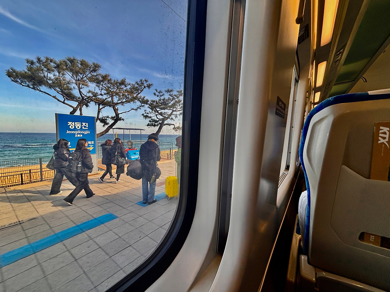 동해의 겨울바다는 한적하다. 여름의 북적임이 떠난 자리에 고요함이 찾아오고, 바람마저 투명해지는 계절. 내가 매일 걷는 추암, 망상해변도, 추억이 깃든 묵호항도 겨울이 되면 마치 나만의 공간처럼 느껴진다. 하지만 이렇게 익숙한 곳도 KTX 동해선 창문 너머로 보면 또 다르다. 빠르게 달리는 기차에서 보는 풍경은 더 넓고, 더 깊다. 마치 내가 매일 보던 고향의 바다가 아닌, 다른 이들에게도 보여주고 싶은 새로운 모습으로 다가오기 때문이다.