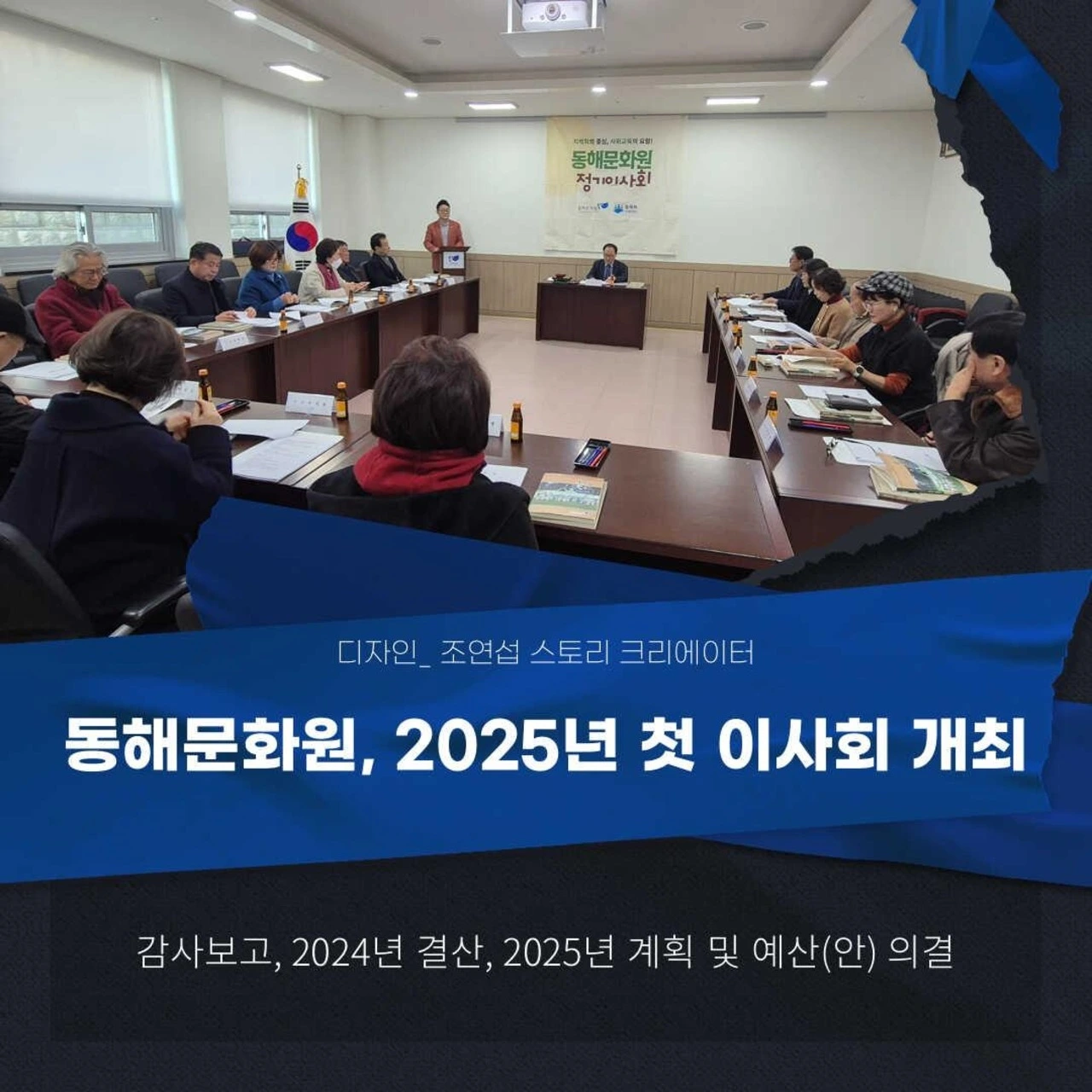 동해문화원은 21일 오전 11시 문화원 회의실에서 임원 20명이 참석한 가운데 ‘2025년 첫 이사회’를 개최했다. 이번 이사회에서는 ‘기록자료 소장 실태와 체계적인 보존 방안’에 대한 보고와 2024년도 감사 결과와 사업 결산을 공유했다. 이어 2025년도 새해 사업계획 및 예산안을 논의하고 이를 원안 가결했다.