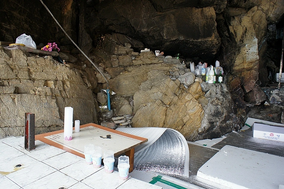 열댓 명이 앉으면 꽉 찰 해수욕장의 뒤는 바위 절벽이었다.