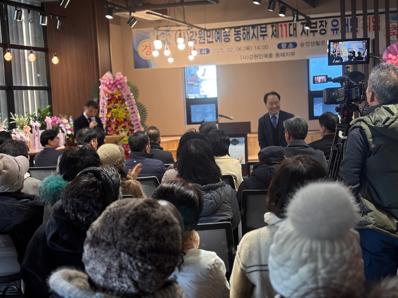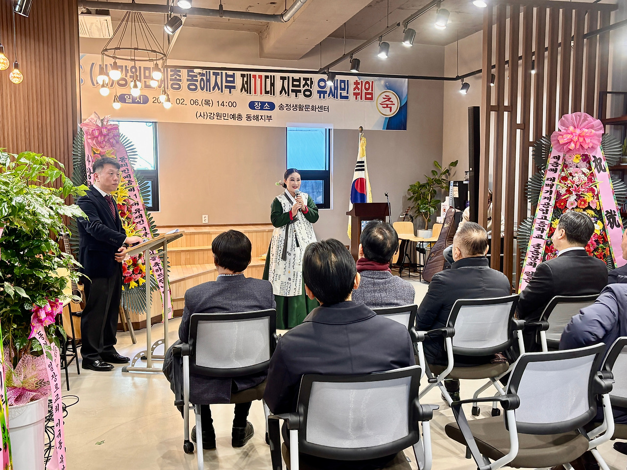 (사)강원민예총 동해지부는 6일(화) 오후 2시, 동해 송정 생활문화센터 강당에서 회원과 관계자 150여 명이 참석한 가운데 제11대 유재민 민예총 동해지부장 취임식을 개최했다.