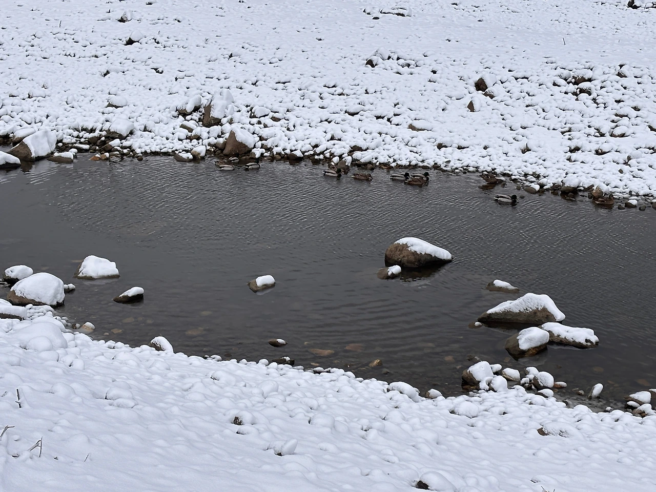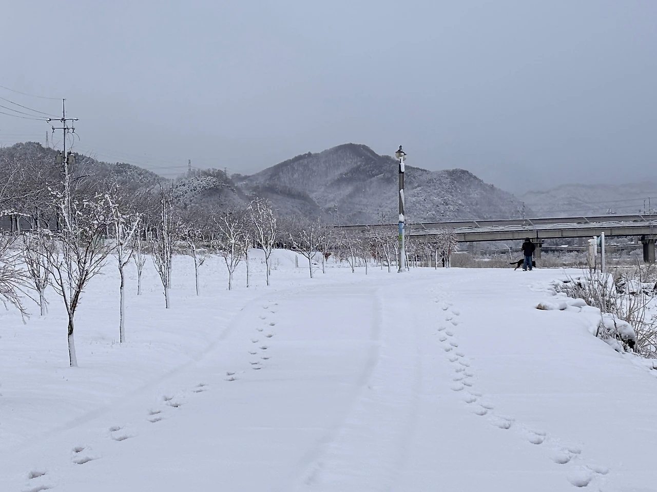 전천은 이미 눈을 즐기는 사람들로 가득했다. 눈 덮인 산책로를 걸으며 봄눈 낭만을 즐기는 폭설 여행자들, 강아지와 조용히 대화하며 걷는 할머니, 강물 위에서 낚싯줄을 던지는 강태공, 저마다의 방식으로 춘설을 만끽하고 있었다.