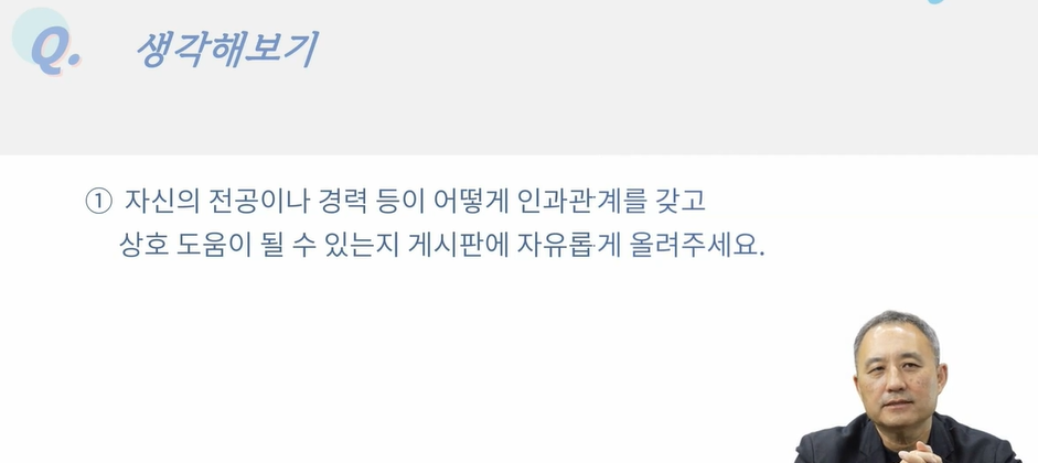 둘째 강의 생각해 보기는 ‘나의 전공과 경력이 어떻게 인과관계를 맺고 상호 도움이 될 수 있는가?’였다. 나는 “문화예술경영을 전공하면서 내가 쌓아온 실무 경험이 단순한 개별 프로젝트 운영을 넘어, 보다 거시적인 전략 수립과 정책적 접근을 가능하게 한다는 점을 깨닫고 있다.