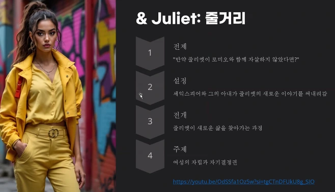 • 특징: 셰익스피어의 로미오와 줄리엣에서 줄리엣이 새로운 삶을 선택했다면?이라는 가정에서 시작된 대체 역사형 뮤지컬