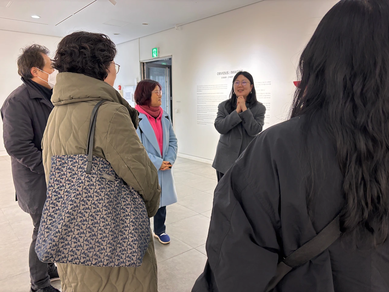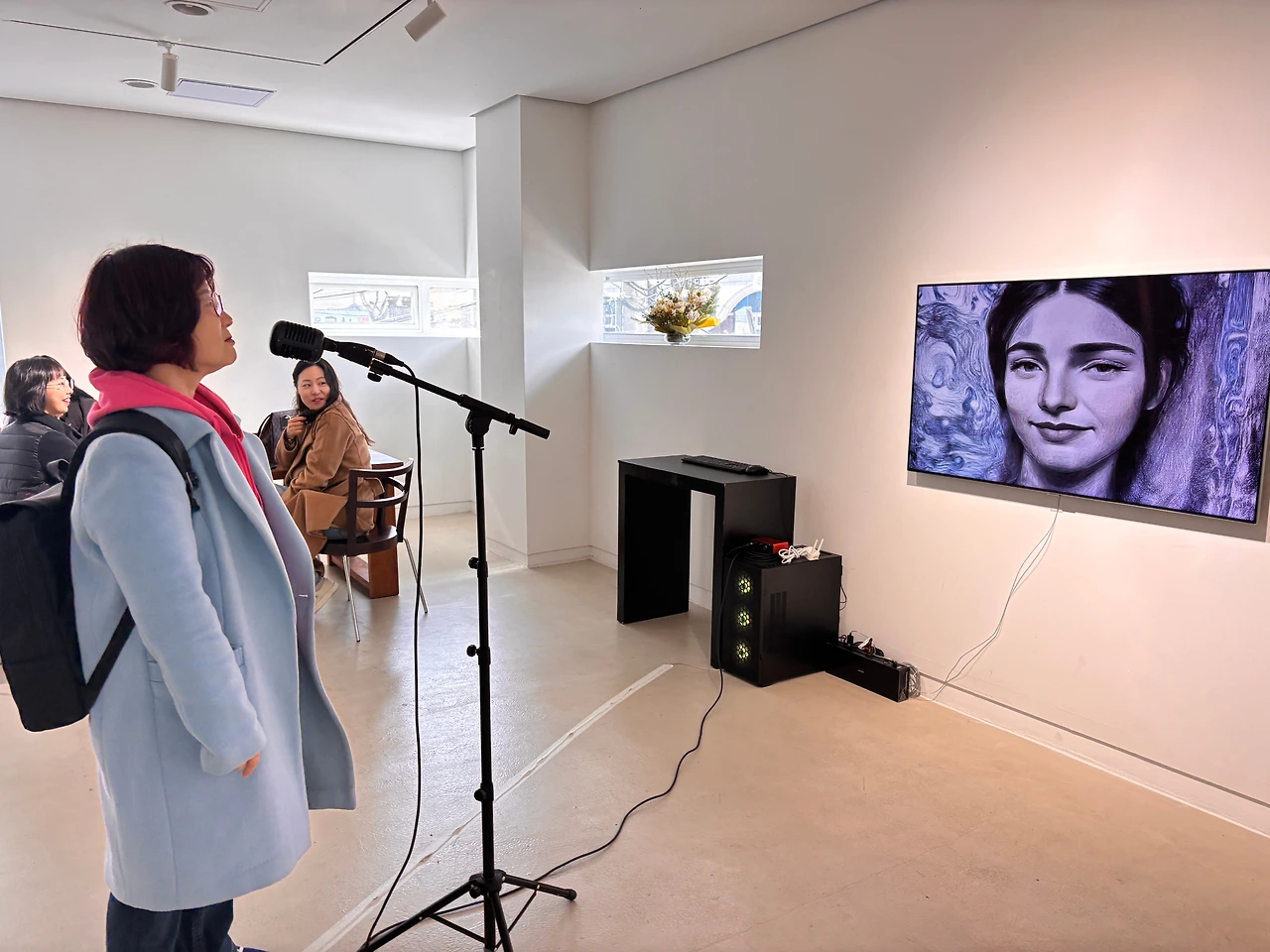 이날 관람에는 경희사이버대학교 문화창조대학원 문화예술경영 전공의 강윤주 주임교수, ‘AI와 문화예술경영’ 강의를 맡고 있는 경기연구원 Ai혁신센터장 김성하 교수, 그리고 대학원 황선영 조교, 원우 10여 명이 함께하여, 기술과 예술의 감성 융합 가능성에 대한 깊이 있는 담론이 오갔습니다. 전시는 5월 3일까지 계속되며, AI 시대의 창작과 감성과 예술의 본질에 대해 다시금 질문하게 만드는 뜻깊은 시간이었습니다.