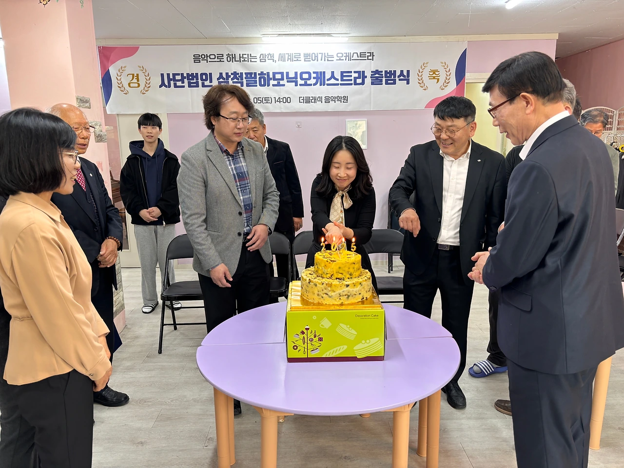 [출범] 삼척지역 문화예술계의 새로운 도전, 삼척필하모닉오케스트라가 5일(토) 오후 2시, 더클래식 음악학원에서 사단법인 출범식을 갖고 공식적인 활동에 들어갔다. 이날 출범식에는 오케스트라 단원과 지역 음악 애호가, 문화계 인사, 시민 등 50여 명이 참석했다.