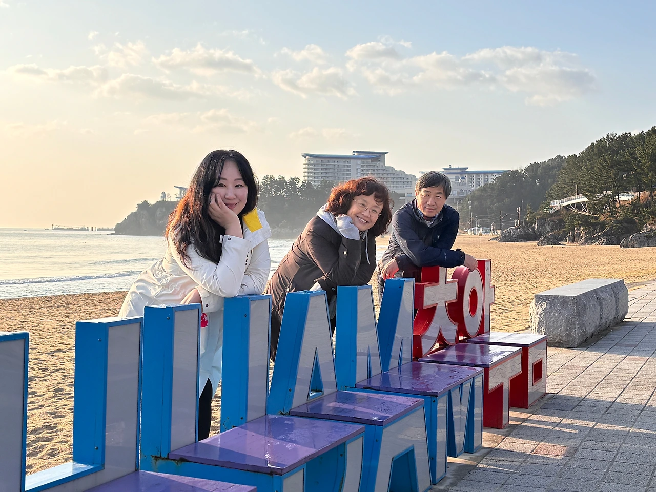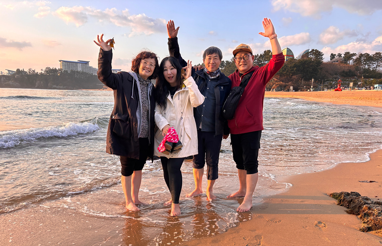 춘천에서 온 귀한 손님, 강원문화연구소 허준구 소장, 유관순 열사를 화폭으로 공개해 화제를 모은 춘천 출신 레아박 작가와 국보급 인상을 가진 이름 모를 피아니스트 등 가족 일행이 김형권 화백 개인전 참석차 동해 추암으로 해변 맨발 체험을 오셨습니다.