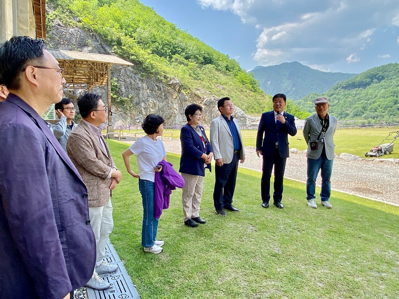 오전 10시 현장을 방문한 일행은 제1주차장에서 버스로 현장에 도착 도슨트의 해설에 따라 가장 위쪽 전망대까지 올라가 아래로 보이는 두 개의 에메랄드 빛 호수를 내려다봤다. 잠시 뒤 좀 더 가까이서 호수를 보기 위해 동해시에서 가장 높은 산 청옥산에서 따온 청옥호 호수 앞 광장에서 40년간 쉴 틈 없이 석탄을 채굴하던 거인이 드디어 휴식의 시간을 가졌다는 <거인의 휴식>에 대한 조형물 해설과 호수가 생기기까지의 삶을 경청했다. 현장에서는 평택시의회 김영주, 이윤하, 최선자, 소남영, 최준구 의원 회원과 박성복(평택학 연구소 소장), 최치선(평택학연구소 이사), 김준현(한신대학교 교수), 김윤태(평택문화재단 이사), 이충원 간사(문화창작소 서우 대표) 등 회원이 합류한 사실을 알고 동해시의회 이동호의장의 환영을 받고 바로 옆에 있는 석회석을 잘게 부수는 공간 쇄석장을 방문해 당시 현장의 생생한 기억을 사진과 도슨트의 해설로 돌아봤다.