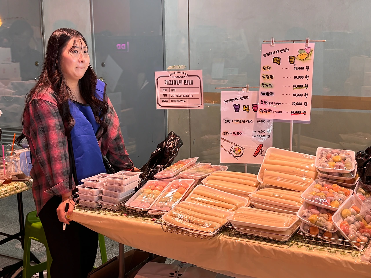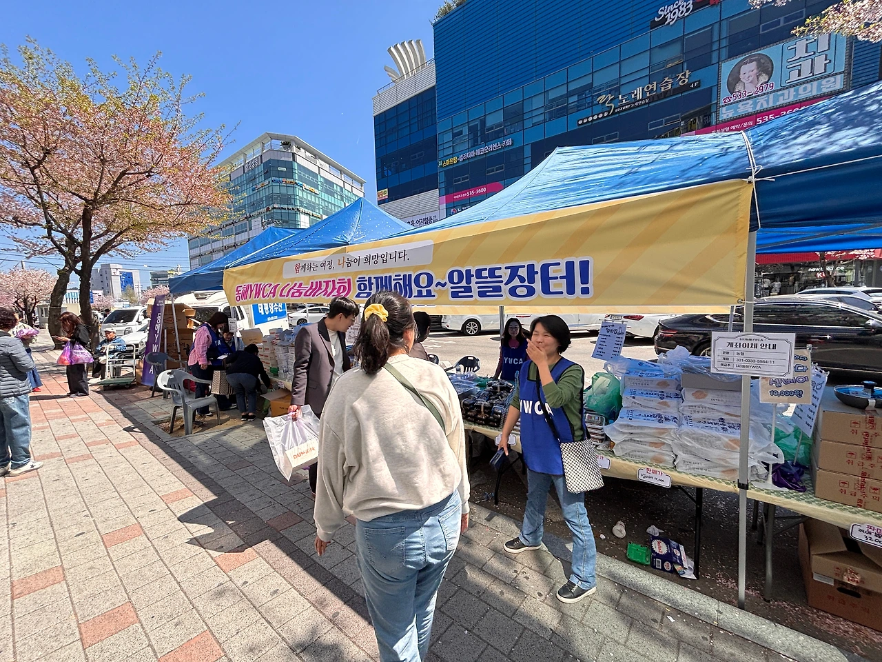 늘 뒤에서 건강한 조직과 안녕을 챙기는 김근혜 동해 YWCA 회장은 따뜻한 분위기를 더욱 고조시켰다. 회장은 그곳에서 많은 이들을 돕고, 이 모든 활동이 더 의미 있는 방향으로 나아갈 수 있도록 이끌어가고 있었다. 그의 헌신과 노력은 장터를 공동체의 연결고리가 되는 특별한 공간으로 바꾸어놓았다.