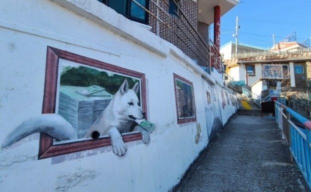 만원을 물고 있는 벽화가 성장한 조형물도 도심과 논골담길 곳곳에 있다. 동쪽바다 중앙시장 광장도 조형물이 설치될 정도로 만복이 시리즈는 인기다. 논골담길을 여행하는 여행자라면 곳곳에 숨어 있는 만복이를 찾아보는 것도 골목길 여행의 추억이 될 것이다.