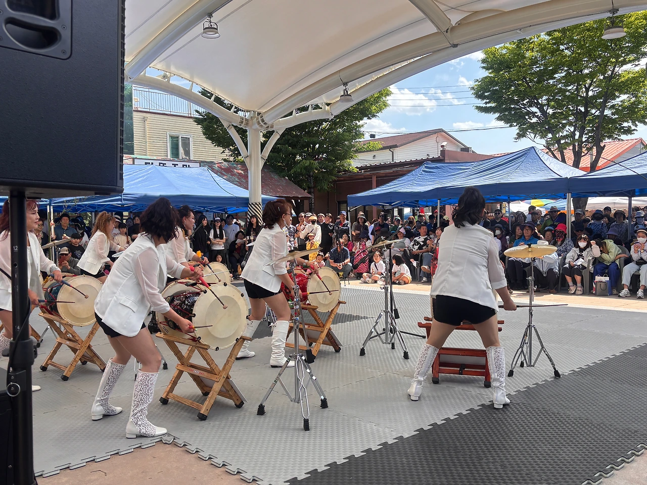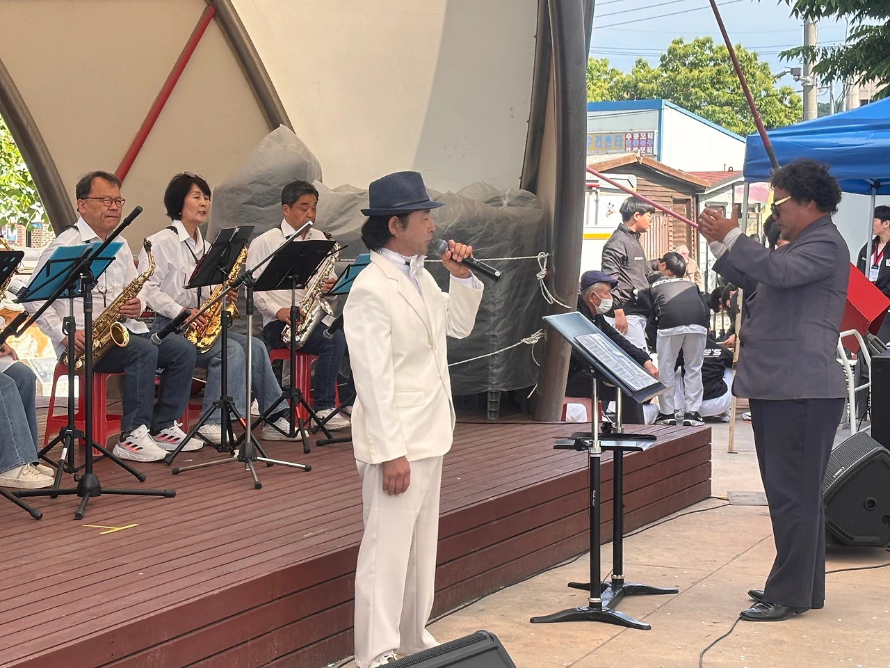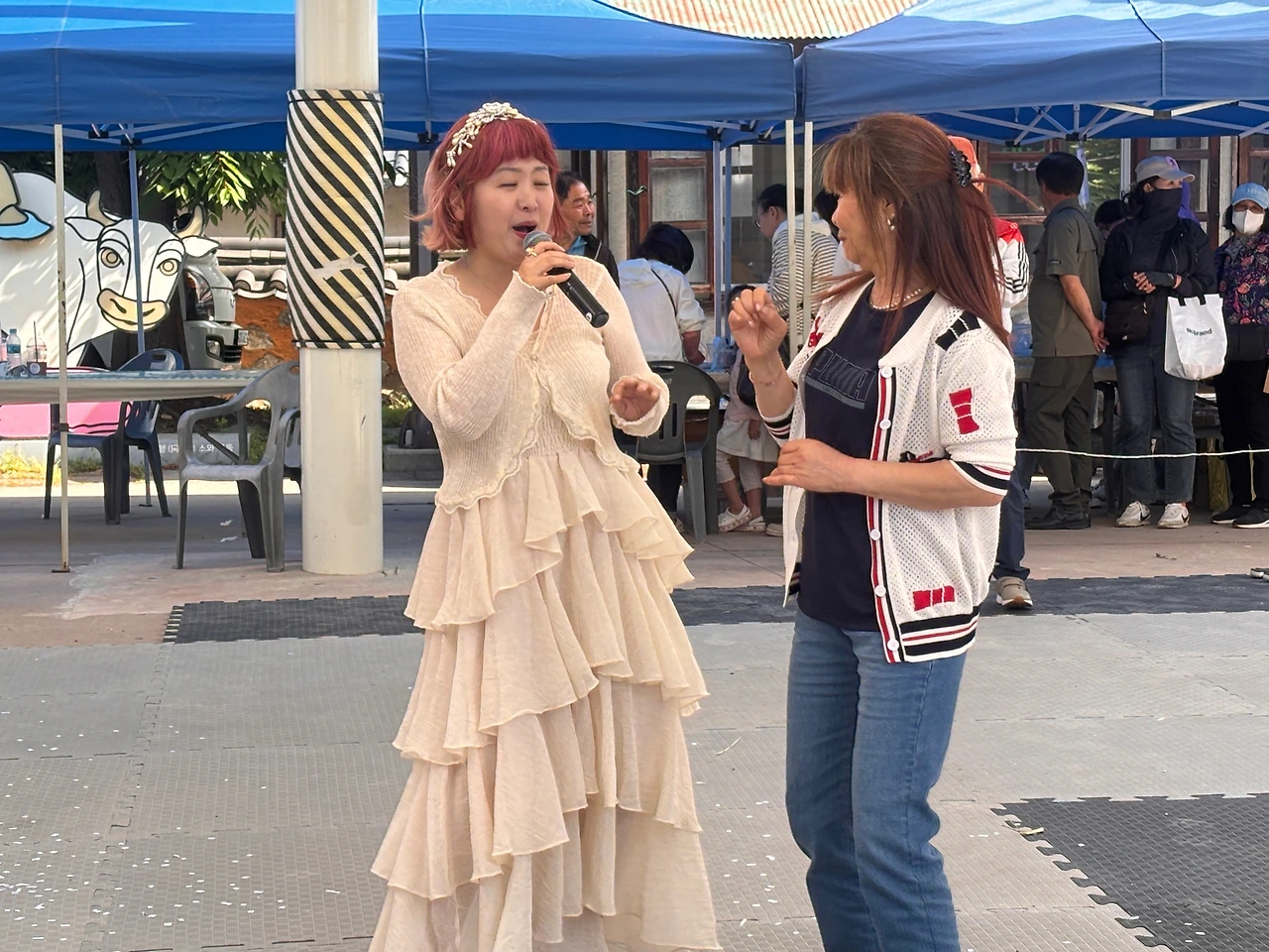 장터를 오가는 할머니들의 인사 소리, 상인들의 발소리, 무대 준비하는 스태프들의 웃음소리가 어우러졌다.