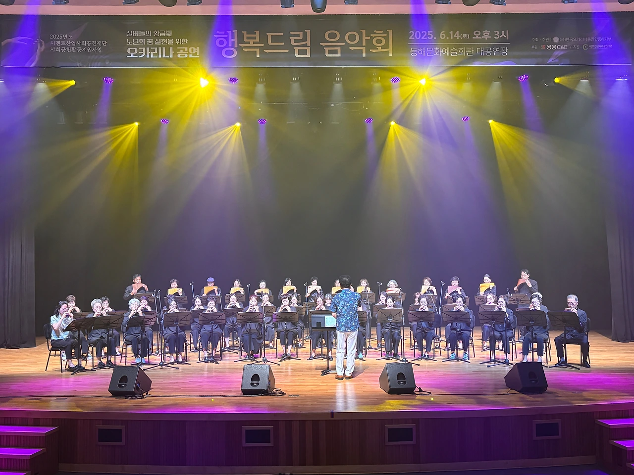 14일 토요일 오후 3시, 동해문화예술회관 대공연장에서 『행복드림음악회』가 성황리에 개최됐다. 이번 음악회는 (사)한국오카리나 총 연합 동해지부가 주최·주관하고, 쌍용 C&E와 시멘트산업사회공헌재단이 후원하여 지역 어르신들과 시민들에게 따뜻한 감동을 전했다.