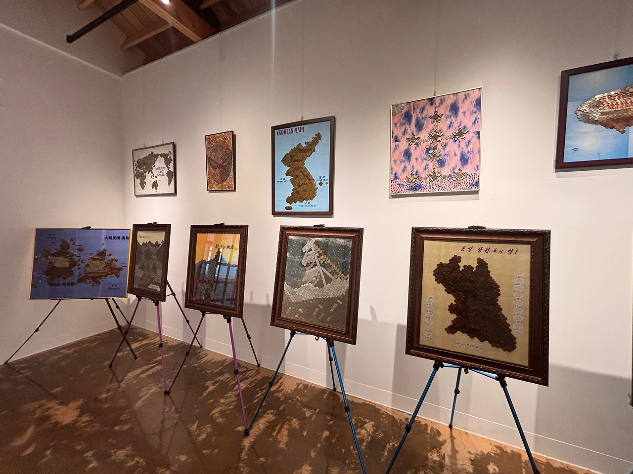 작가가 전시한 작품들은 언뜻 보기에는 평범하다. 한국의 10원짜리, 북한의 독도 조화, 일제강점기의 지폐, 로마시대 주화, 나치 독일의 동전, 포로수용소에서 몰래 빠져나온 토큰들. 그러나 이 작은 동전들이 모여 이루는 거대한 ‘나비의 꿈’을 마주하면, 관람객은 전율한다. 단일한 화폐가 아니라, 인류가 걸어온 문명사 전체가 한 폭의 그림으로 피어난 듯한 착각에 빠지기 때문이다.