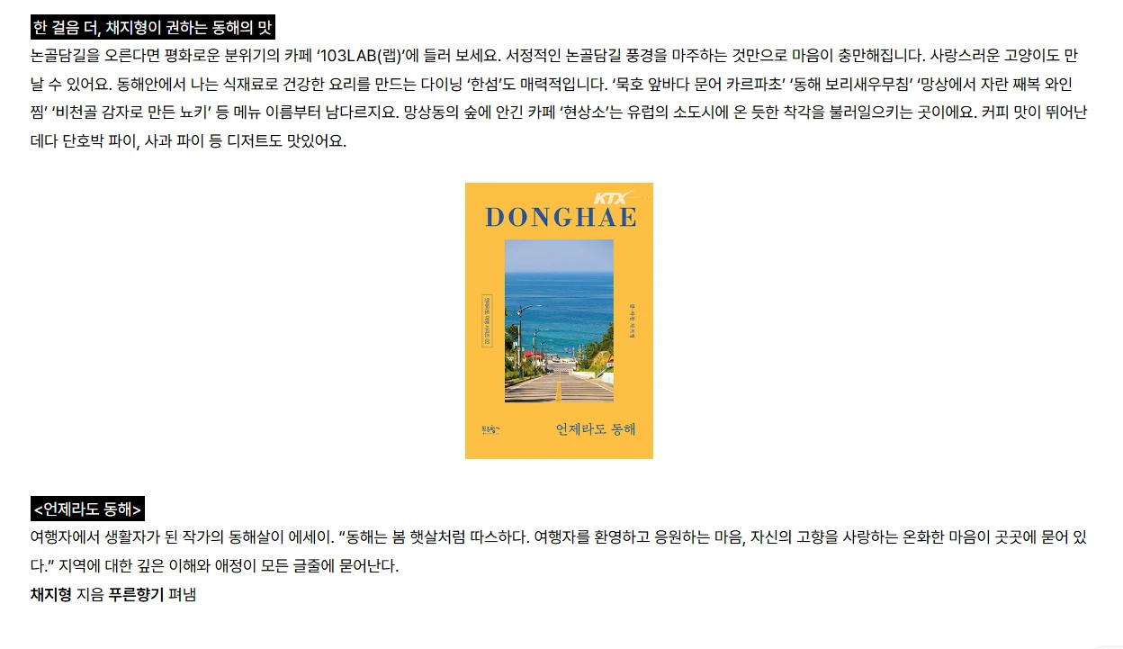 특히 채지형 여행작가가 최근 발간한 동해살이 에세이 『언제라도 동해』도 함께 소개되고 있었다.