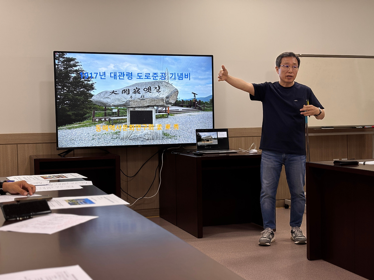 동해문화원 동해역사문화연구회 8월 노을포럼이 12일 문화원 청운실에서 진행됐다. ‘노을포럼’ 8월 특강은 동해역사문화연구회 전문위원 강동수 전 한중대학교 교수가 담당했다. 주제는 “1917년 세워진 대관령 도로 준공 기념비의 숨겨진 이야기”로 기념비의 진정한 의미와 역사적 맥락을 재조명했다.