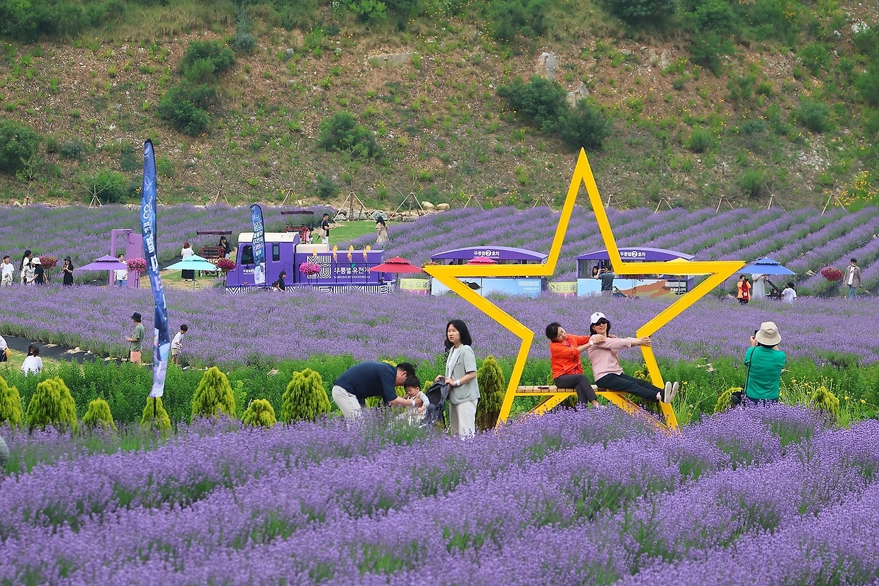 무릉별유천지 곳곳은 자연스럽게 인기 있는 포토존이 되었고 방문객들은 가족, 연인과 다양한 포즈로 추억을 담았다. 보라색 나라 라벤더 정원의 산책은 무릉별류천지를 200% 즐기는 기회였다.