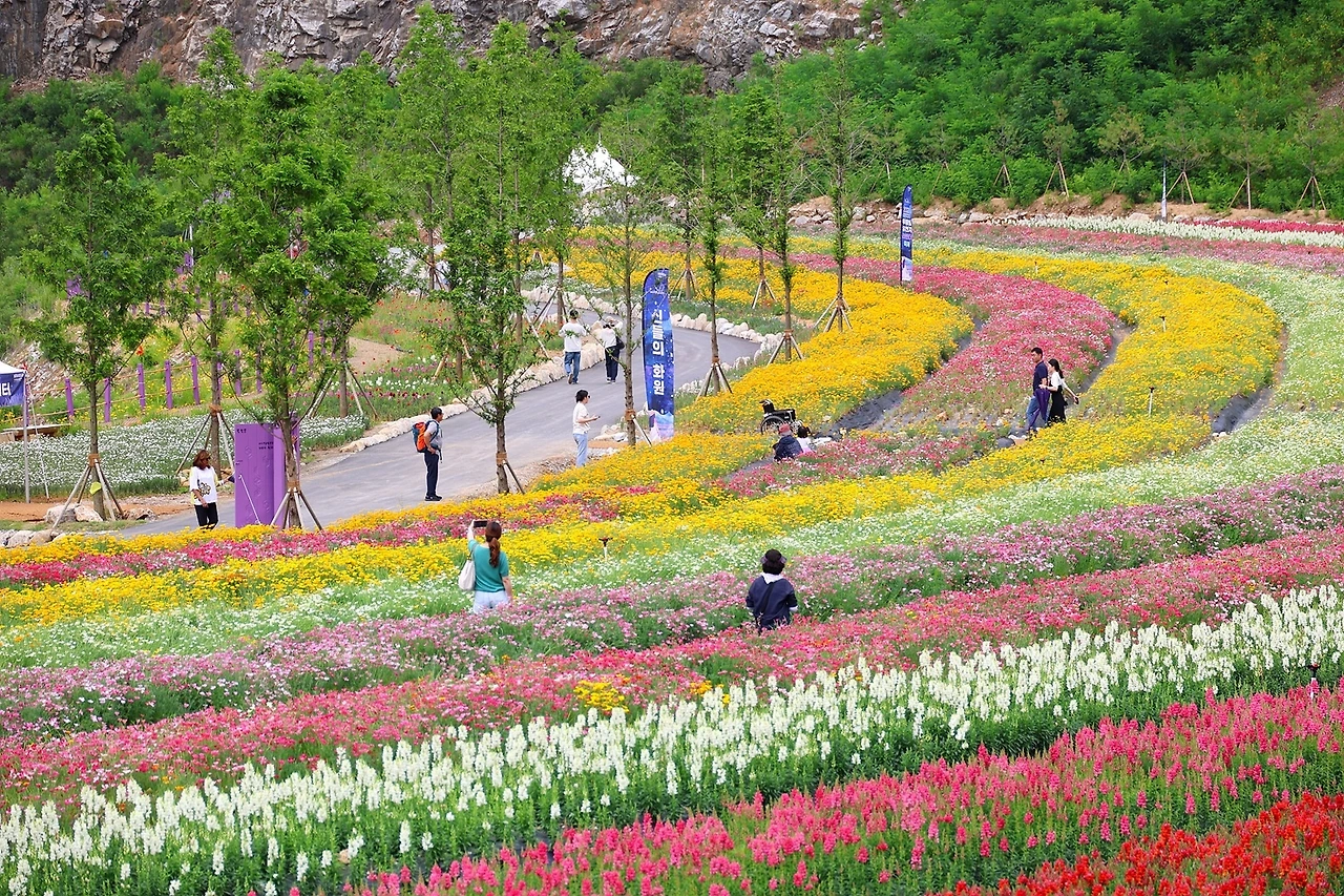 청옥산에서 따온 청옥호를 배경으로 조성된 <라벤더정원>과 <신들의 화원>, 무릉별 꽃밭에서는 만개한 보랏빛 라벤더와 금영화, 금어초, 수레국화, 금잔화 등 형형색색의 초화류가 아름다운 자태를 뽐냈으며, 특히 두미르 전망대와 루지 탑승장에서 바라본 에메랄드 빛 2개의 호수와 광활한 라벤더 정원은 장관이었다.