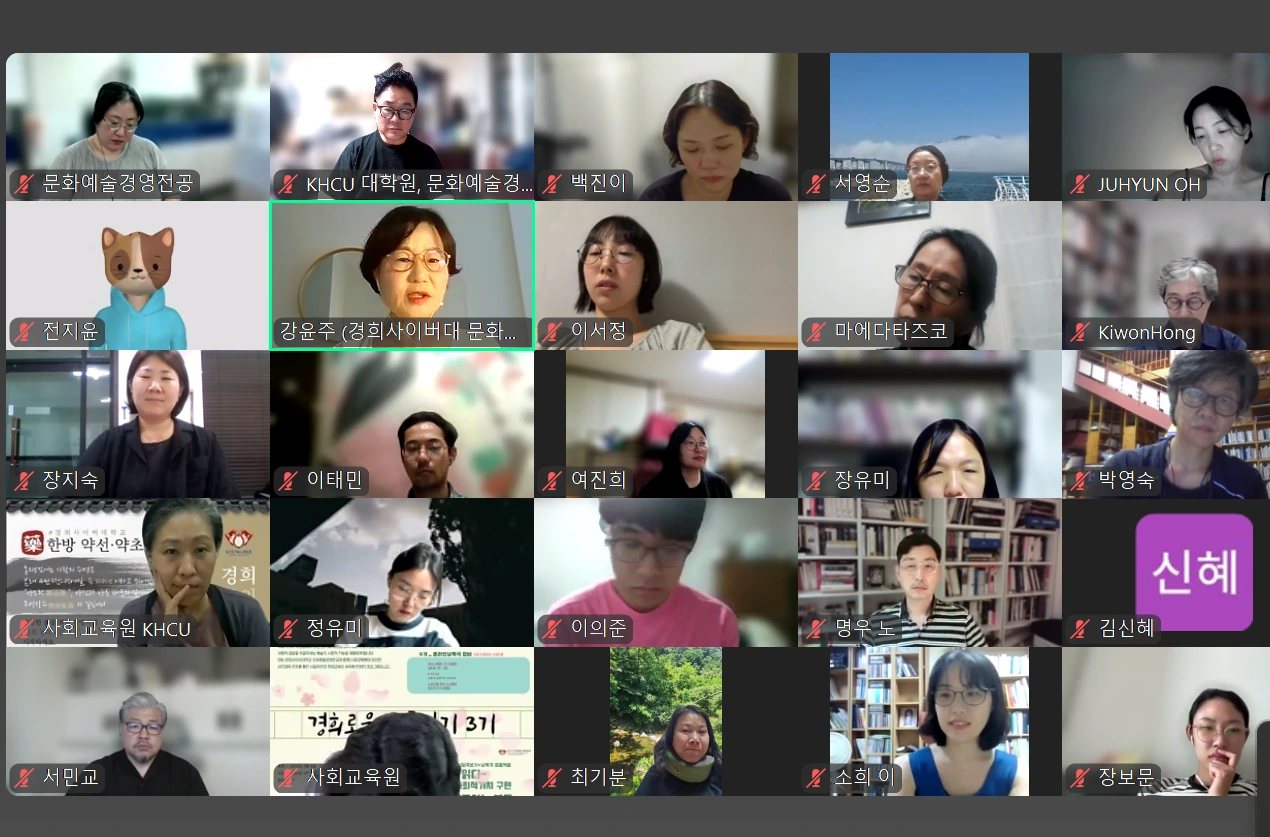 경희사이버대학교 대학원(문화예술경영 전공)에서 마련한 “문화 insight” 8월 특강이 18일 저녁 온라인으로 진행됐다. 이날 특강 주제는 「시민교육으로서의 낭독극」으로 강의 핵심은 낭독극과 시민교육이다. 특강은 독일, 일본, 미국, 두바이, 서울, 동해 등 에서 총 52명이 참석했다. 강의는 강윤주 주임교수가 독일 현지에서 진행했다.
