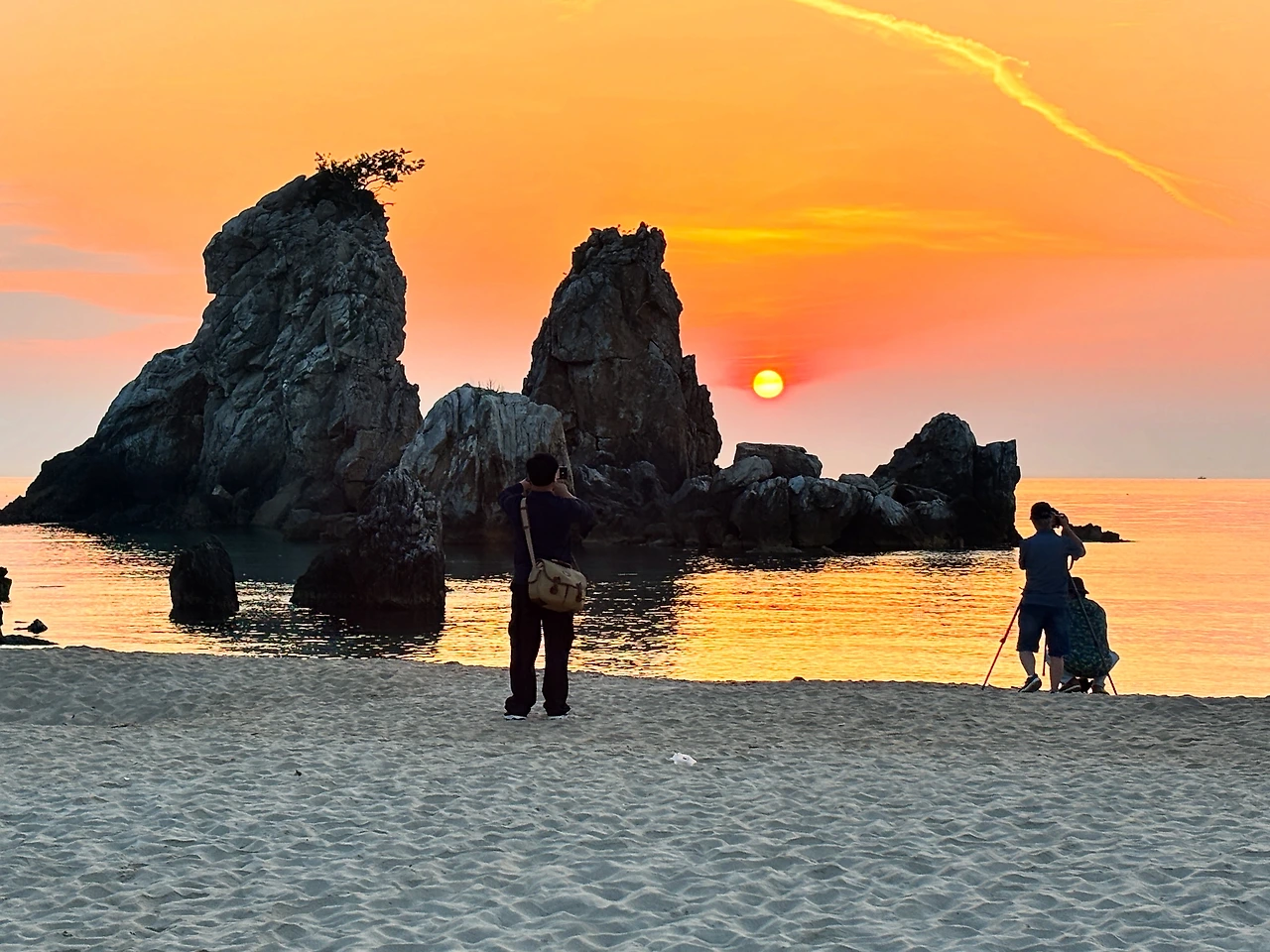 추암의 일출은 늘 아름답다. 그러나 갯바위와 촛대바위가 함께 빚어내는 장면은 특별하다. 바다 수평선을 뚫고 솟아오르는 붉은 태양이 바위를 비출 때, 순간은 자연이 만들어낸 장엄한 그림이 된다. 오늘은 특히 여름의 끝자락이라는 계절감이 더해져, 그 풍경은 환상이라는 표현 외에는 달리 설명할 수 없었다.
