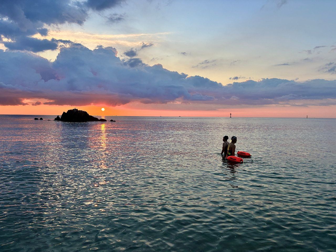 이날 아침 추암해변은 유난히 평화로웠다. 바닷바람을 맞으며 모래사장을 걷는 맨발러들의 발걸음은 조용한 묵상을 닮아 있었고, 바다에서는 수영 동호회에 속한 주부들이 물살을 가르며 아침 운동을 즐기고 있었다. 바위 위 태양과 해변의 사람들, 그리고 파도 소리가 어우러져 한 폭의 풍경화를 완성했다.