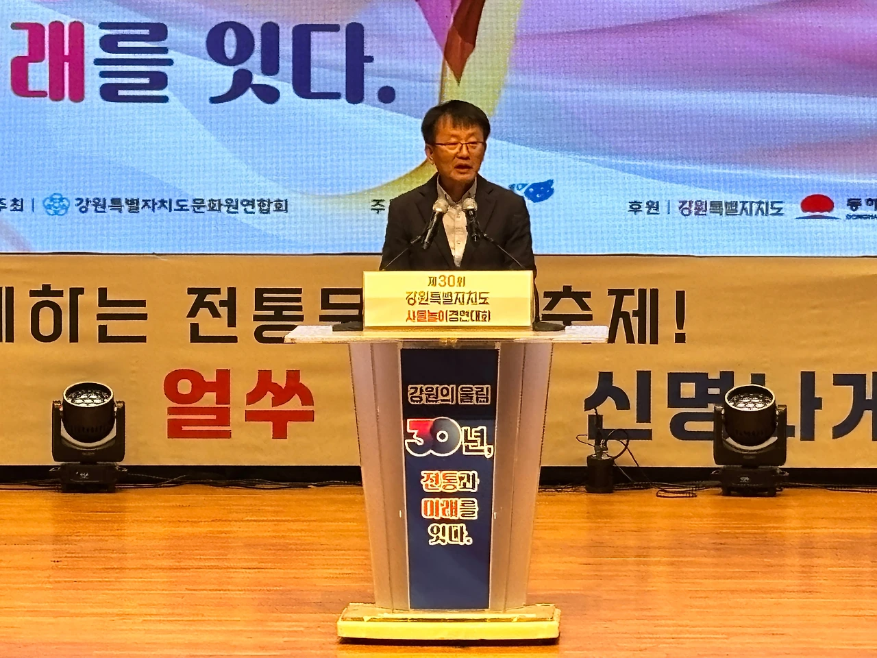 도 문화원연합회 박주선 회장은 “도 사물놀이경연대회의 30주년이라는 역사적인 무대를 동해에서 성대하게 개최하게 되어 매우 영광스럽다”라며, “이번 대회가 지난 30년의 역사를 되짚어보고, 앞으로의 30년을 향한 새로운 도약의 발판이 되기를 바란다”라고 밝혔다.