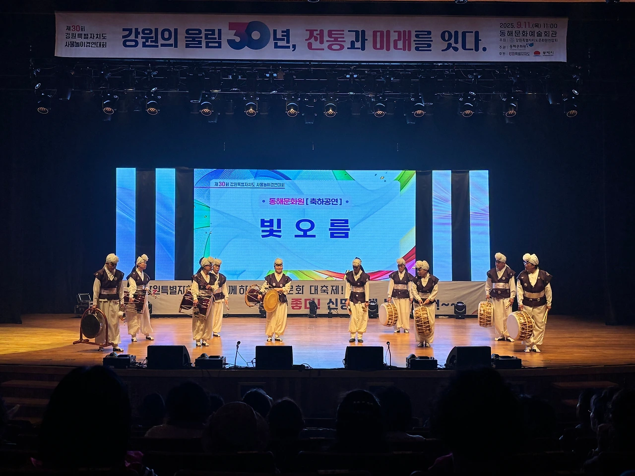 제30회 강원특별자치도 사물놀이경연대회가 ‘강원의 울림 30년, 전통과 미래를 잇다’를 주제로 11일, 동해문화예술회관 대공연장에서 개최됐다.