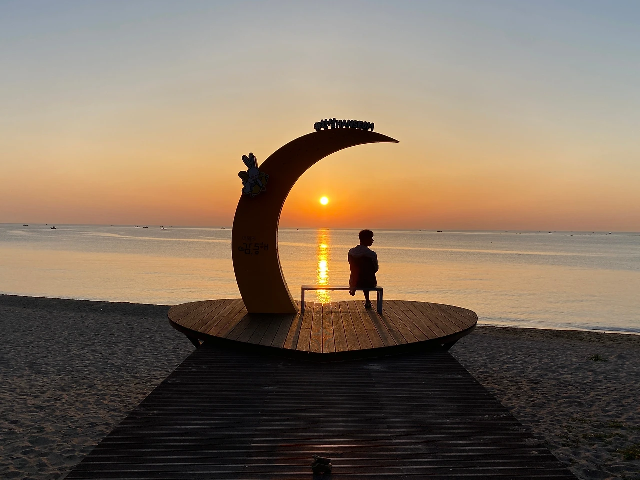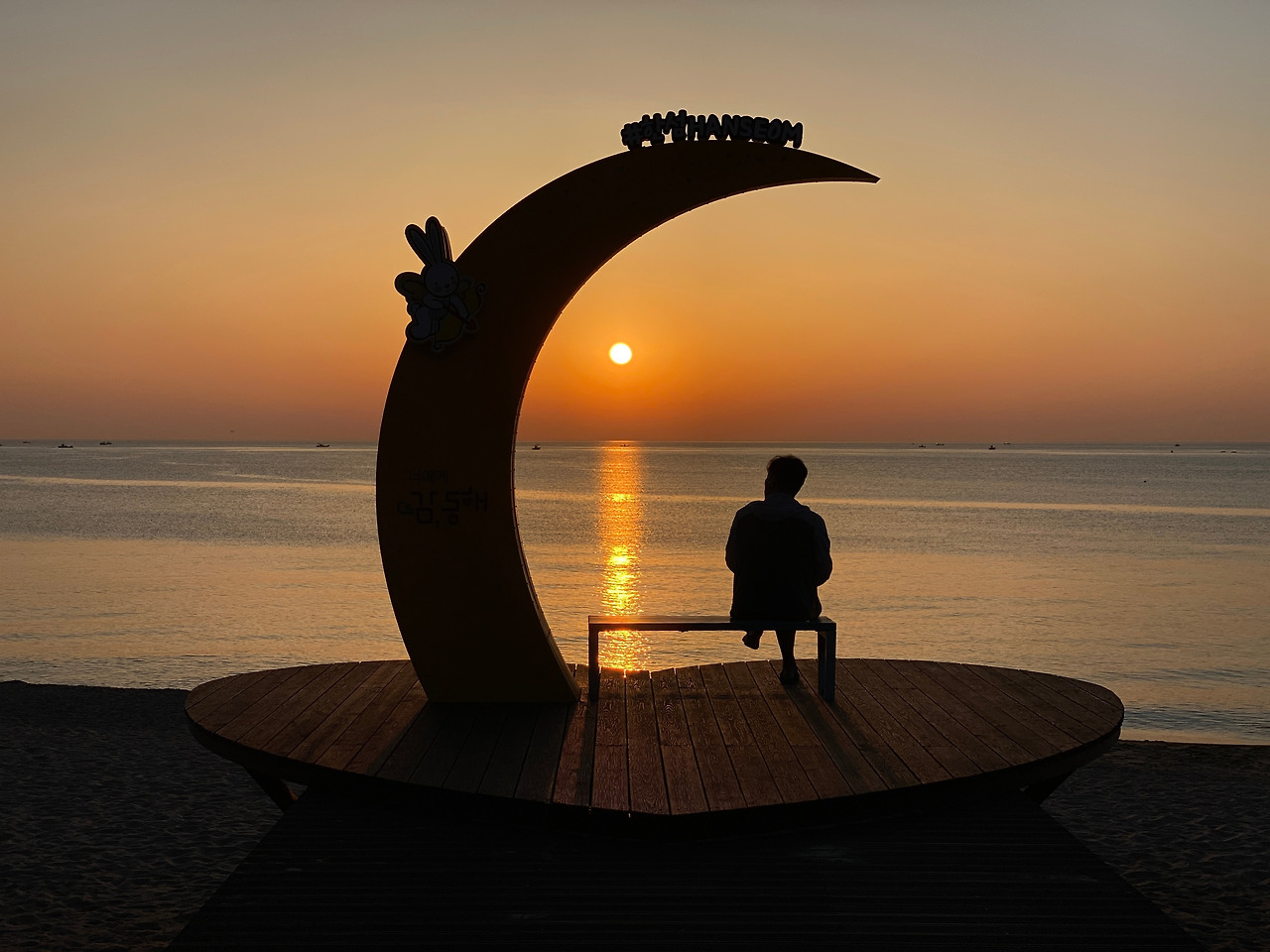 일출을 담기 위해 출사 나온 목사 작가님을 비롯한 작가, 아침 걷기에 나선 시민들과 한섬으로 들어서는 입구에 위치한 오작교 같은 짧고 이쁜 다리 정상에서 지역정치를 이야기하는 마을 어르신들 풍경은 예나 지금이나 변함이 없다. 옆에서 잠시 귀동냥만 해도 동해와 한국의 정치를 읽는다. 이른 아침부터 분주한 어르신들을 가로질러 도착한 행복한 섬 일출은 이미 동해 중턱에 올랐다.