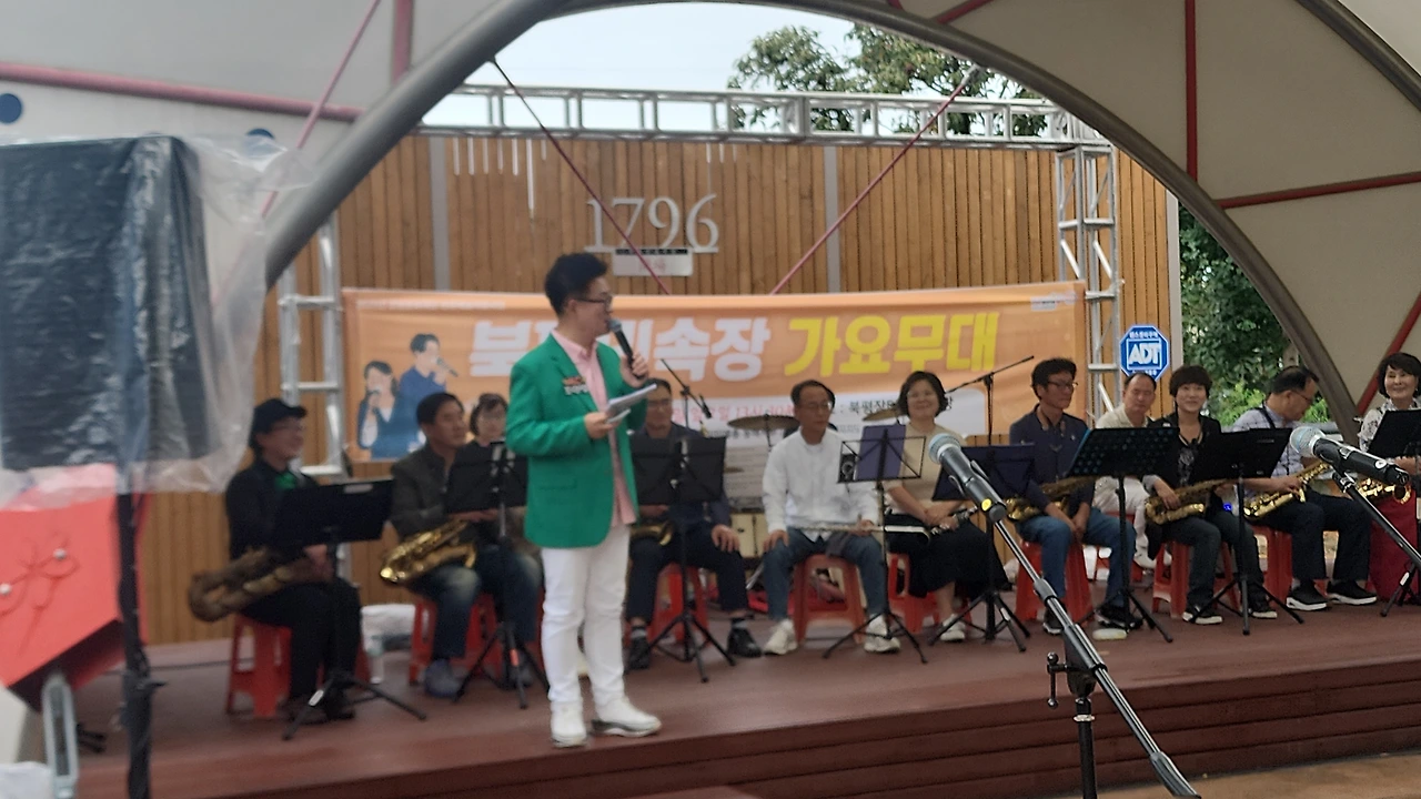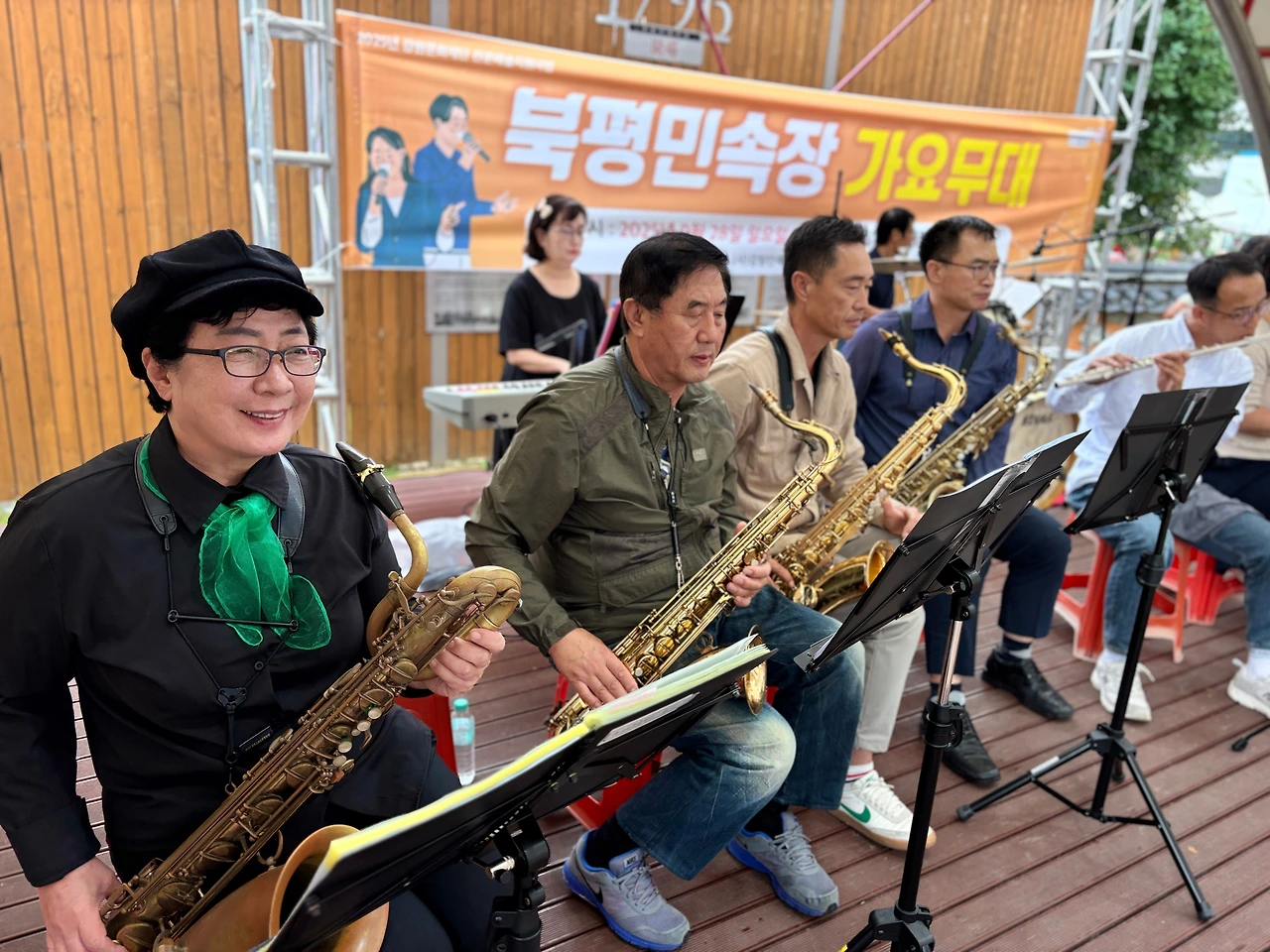 28일, 동해 북평 장터 문화광장에서는 추석 마중을 위한 장터 ‘가요무대‘가 열렸다. 마을 공동체의 오랜 기억을 불러일으키는 특별한 자리였다. (사)강원민예총 동해지부가 주관하고 강원문화재단이 후원한 이 무대는 전문 예술인이 멘토로 시민이 직접 악단이 되고, 또 다른 시민이 노래하는 형식으로 꾸려졌다. 관객으로 온 주민들도 수동적 감상자가 아니라 노래를 직접 부르며 참여하는 시간을 마련해 박수를 받았다. 이곳에서는 무대와 객석의 구분이 사라지고, 모두가 한데 어우러진 생활 예술의 장이 펼쳐졌다.