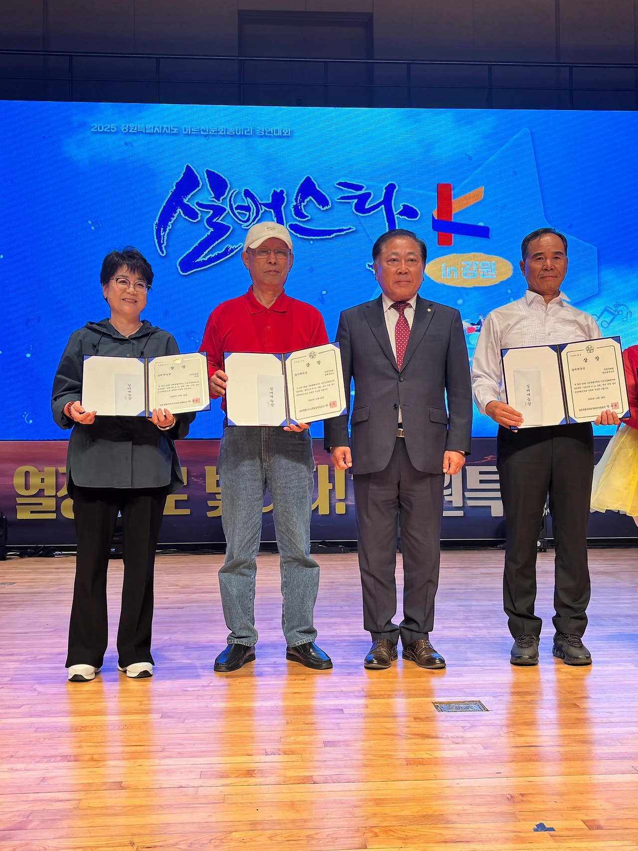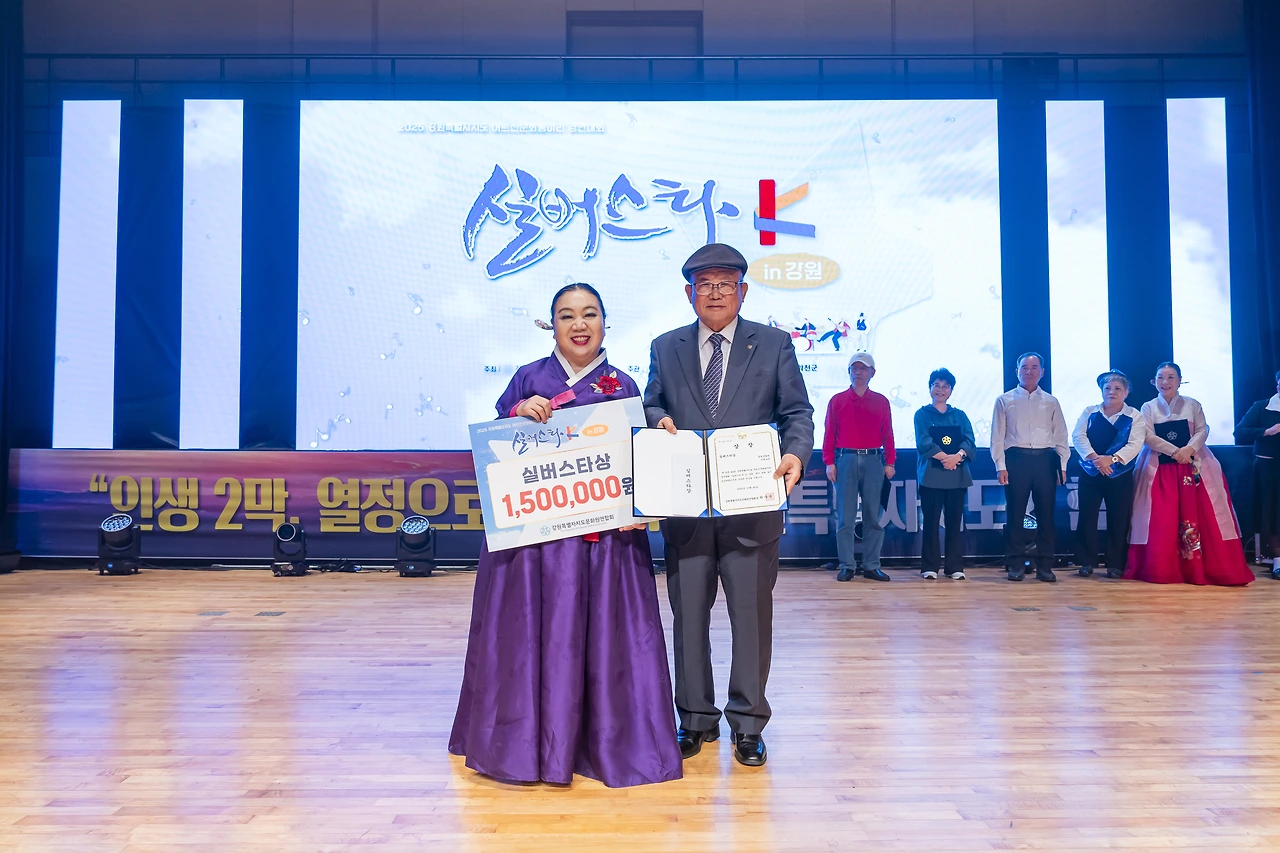 그중 춘천문화원 ‘우리 소리팀’은 전통 판소리를 현대적 감각으로 재구성한 작품 ‘우리 소리 판소리극’을 통해 ‘실버스타상’을 수상했다. 완성도 높은 구성과 감정 표현, 전통예술 생동감을 현대적으로 풀어낸 연출이 높은 평가를 받으며, 상금 150만 원과 상장을 수여받았다. 심사위원단은 “전통 뿌리를 지키면서도 세대 간 소통을 이끌어낸 수작”이라 평가했다.