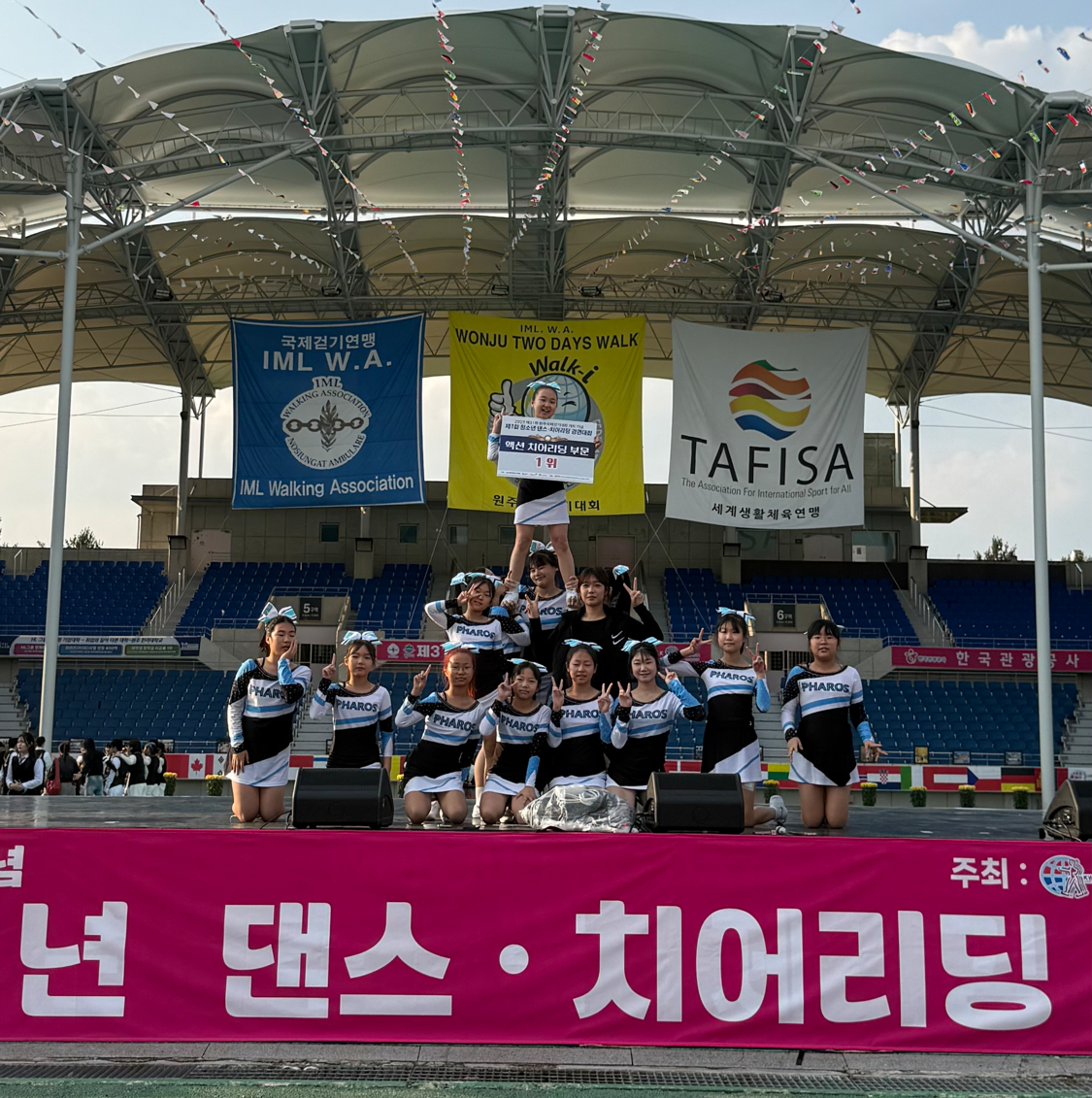 동해 지역 청소년으로 구성된 ‘파로스(Pharos) 치어리딩팀’이 10월 25일 원주 댄싱공연장에서 열린 ‘제31회 원주국제 걷기 대회 기념 제1회 청소년 댄스·치어리딩 경연대회’에서 치어리딩 부문 1위를 차지했다. 치어리딩, 댄스 전국 20개 팀이 참가한 이번 대회에서 파로스팀은 뛰어난 동작 구성과 리듬감, 팀워크로 심사위원단의 만장일치 호평을 받아 상장과 상금 30만 원을 수상했다.