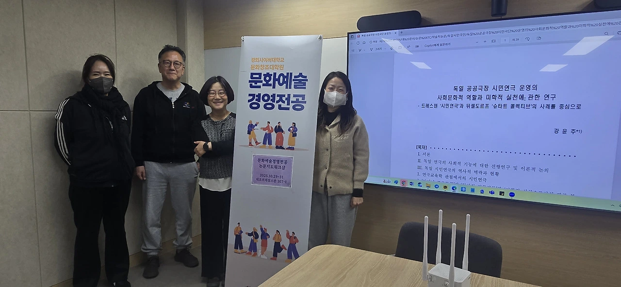 문화예술경영 전공인 나는 일정상 첫 지도 대상으로 배정됐고, 열정 가득하기로 정평이 난 강윤주 지도교수의 지도를 받게 되었다. 오랜만에 지도교수님과 원우들이 한자리에 모여, 논문이라는 단단한 벽을 마주하며 각자의 언어로 길을 찾아가는 시간이었다.