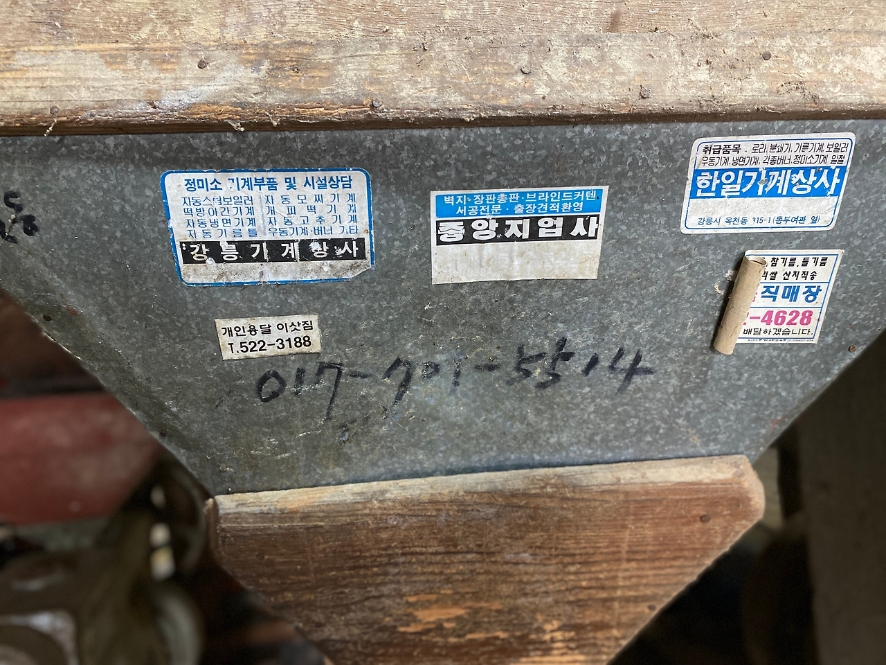 정미소 내부에 남겨진 메모와 전화번호 국번 017,018만 봐도 대충 정미소의 역사는 가늠할 수 있다. 이 정미소는 동해학기록센터 주관으로 지난 4월 용산서원에서 개최된 북삼동 마을축제 '효행제' 기간에 시설을 공개해 가족단위 시민들에게 관심을 끌었던 근대 건축물이다.