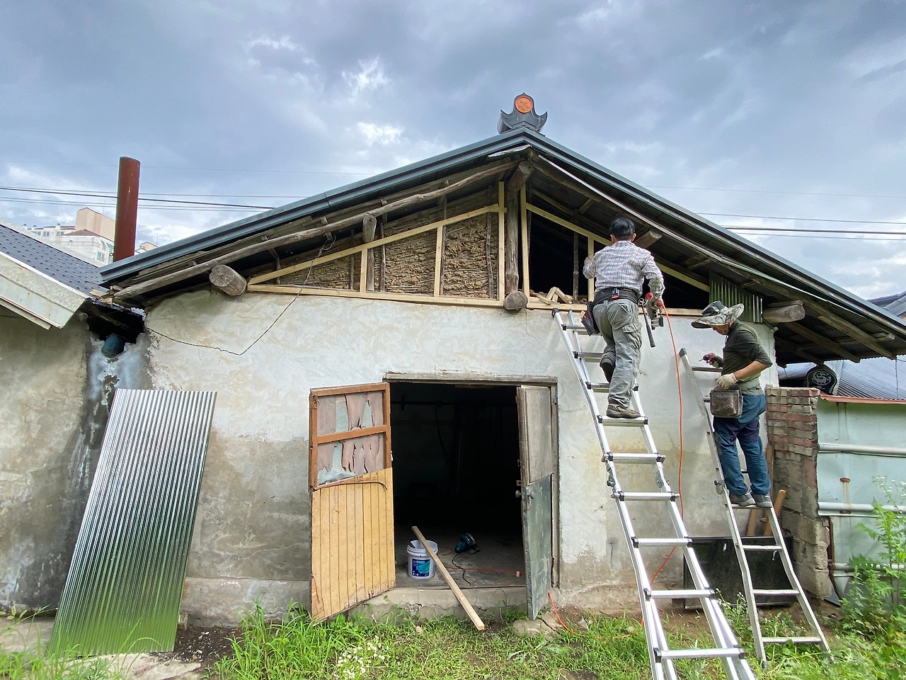 지난 3월 강릉 산불을 발생시켰던 강풍은 동해에도 큰 피해를 가져왔는데 용산 정미소도 함석지붕이 날아가고 건물의 벽이 일부 무너져 앞으로 올 장마로 인하여 원형이 훼손될 위기에 처하여 이번에 긴급 응급 복구를 하게 되었습니다.