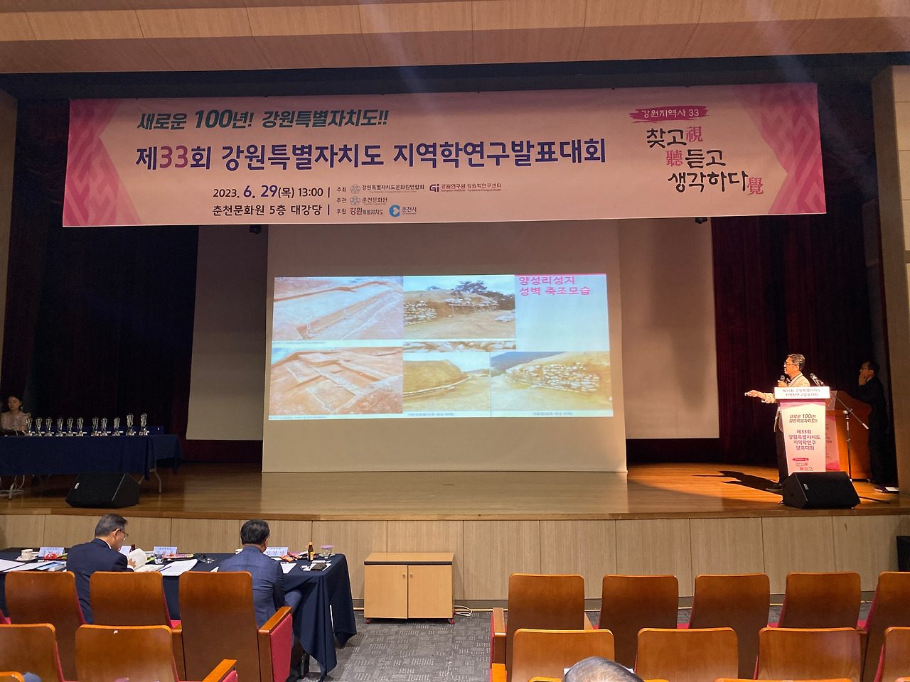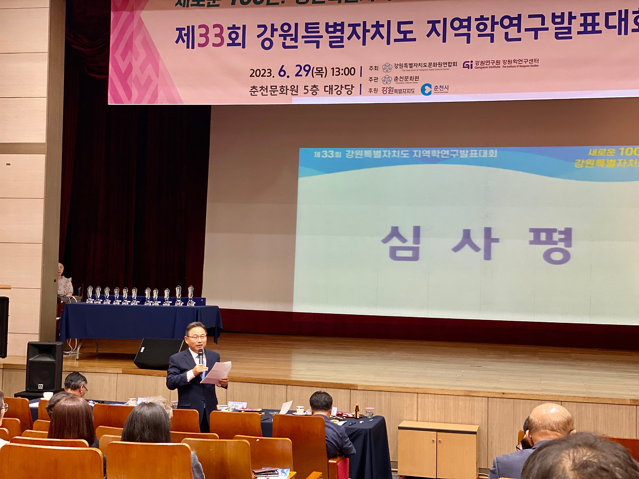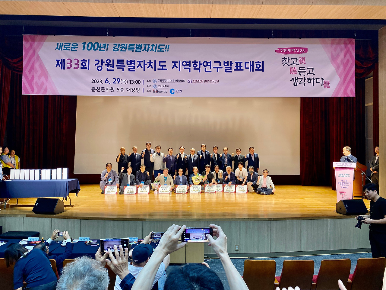 제33회 강원특별자치도 지역학연구발표대회가 29일 오후 1시부터 춘천시 춘천문화원 강당에서 개최됐다. 지역학발표회 참가대상은 도내 <18개 시, 군 문화원>이며 올해는 각 지역을 대표로 11개 지역이 참가했다. 내용은 지역 연구자들의 <현장조사 중심으로 조사된 다양한 주제의 지역학>을 발표하는 자리였다.