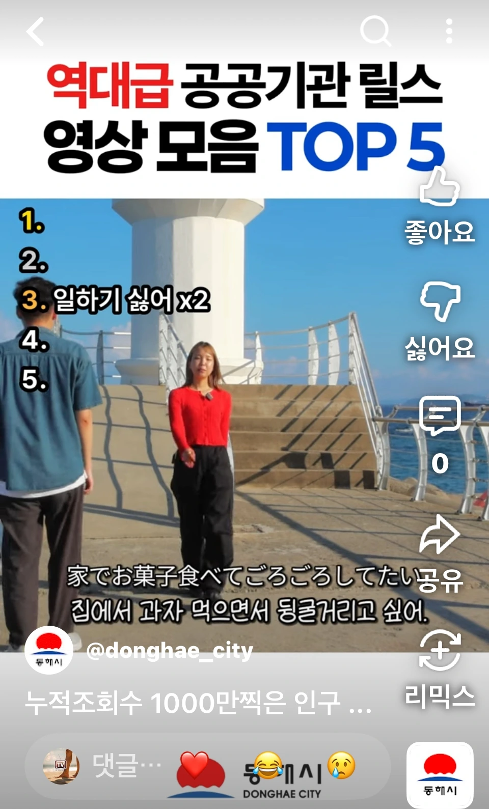 자체제작 동해시 공식인스타 릴스 링크