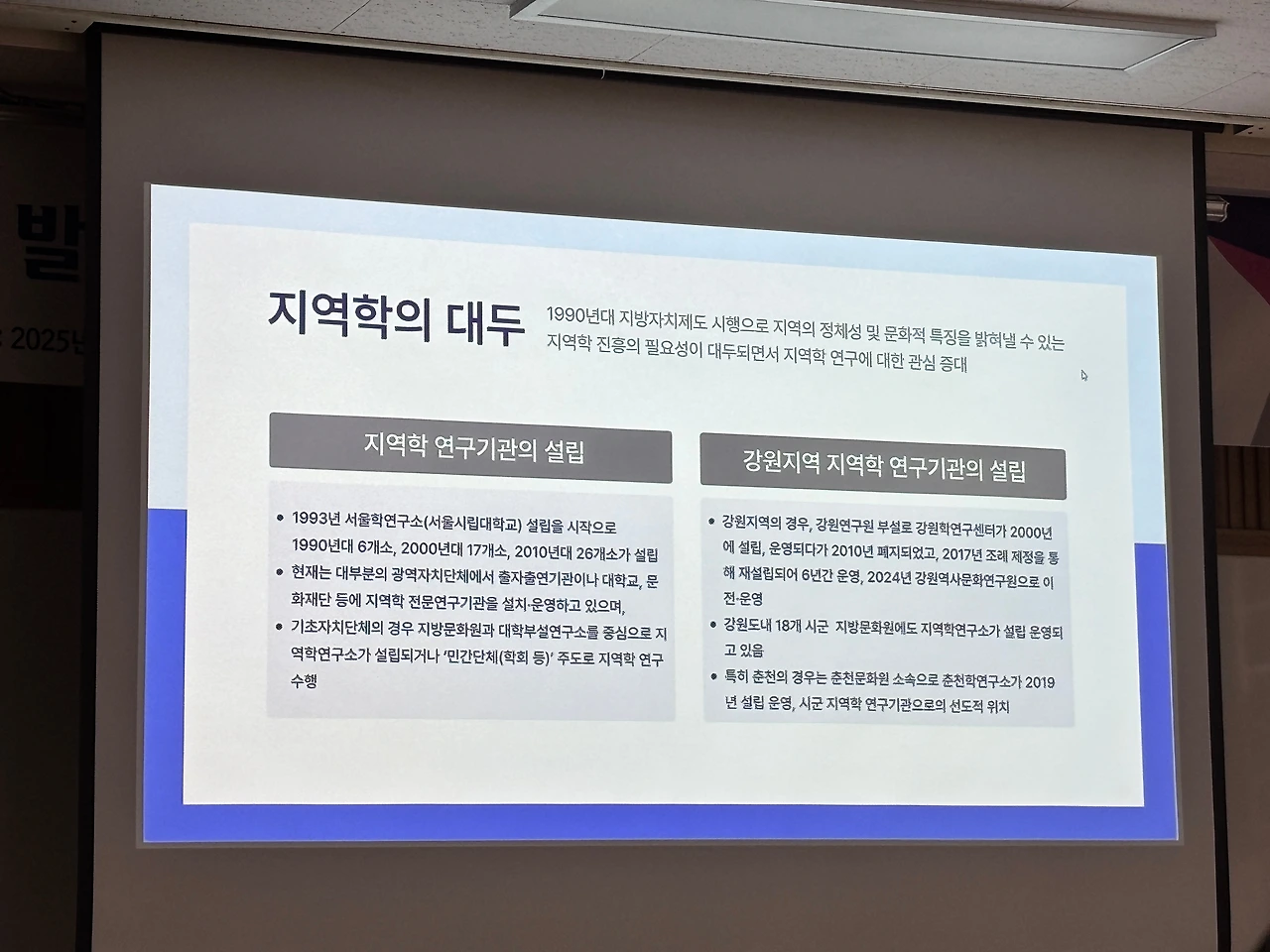 강원대학교 ‘국학연구소’가 12일 춘천 캠퍼스 인문대 강당에서 개최한 “지역학 기관 간 연계방안 연구“ 심포지엄에서 한 가지 인상 깊은 제안이 나왔다.