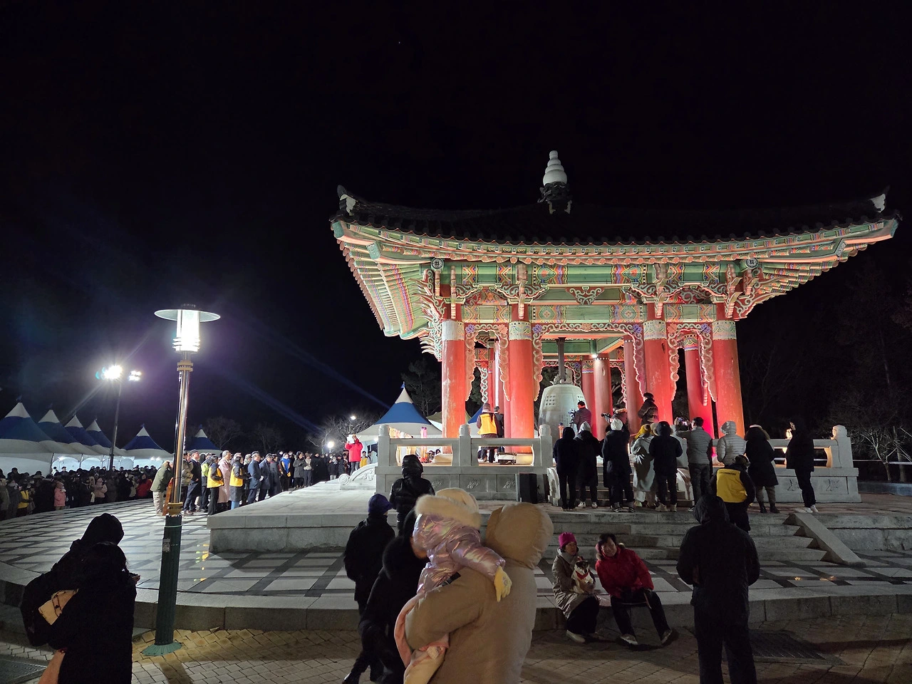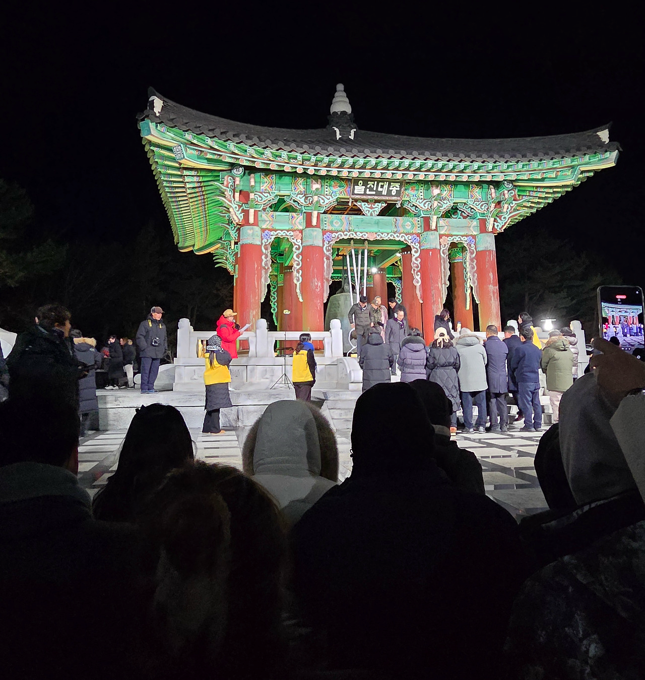 12월 31일 밤 울진 망양정 해맞이공원에서 2026 병오년 새해를 여는 제야의 종 타종식이 군민과 여행자들의 뜨거운 호응 속에 성황리에 마무리됐다.