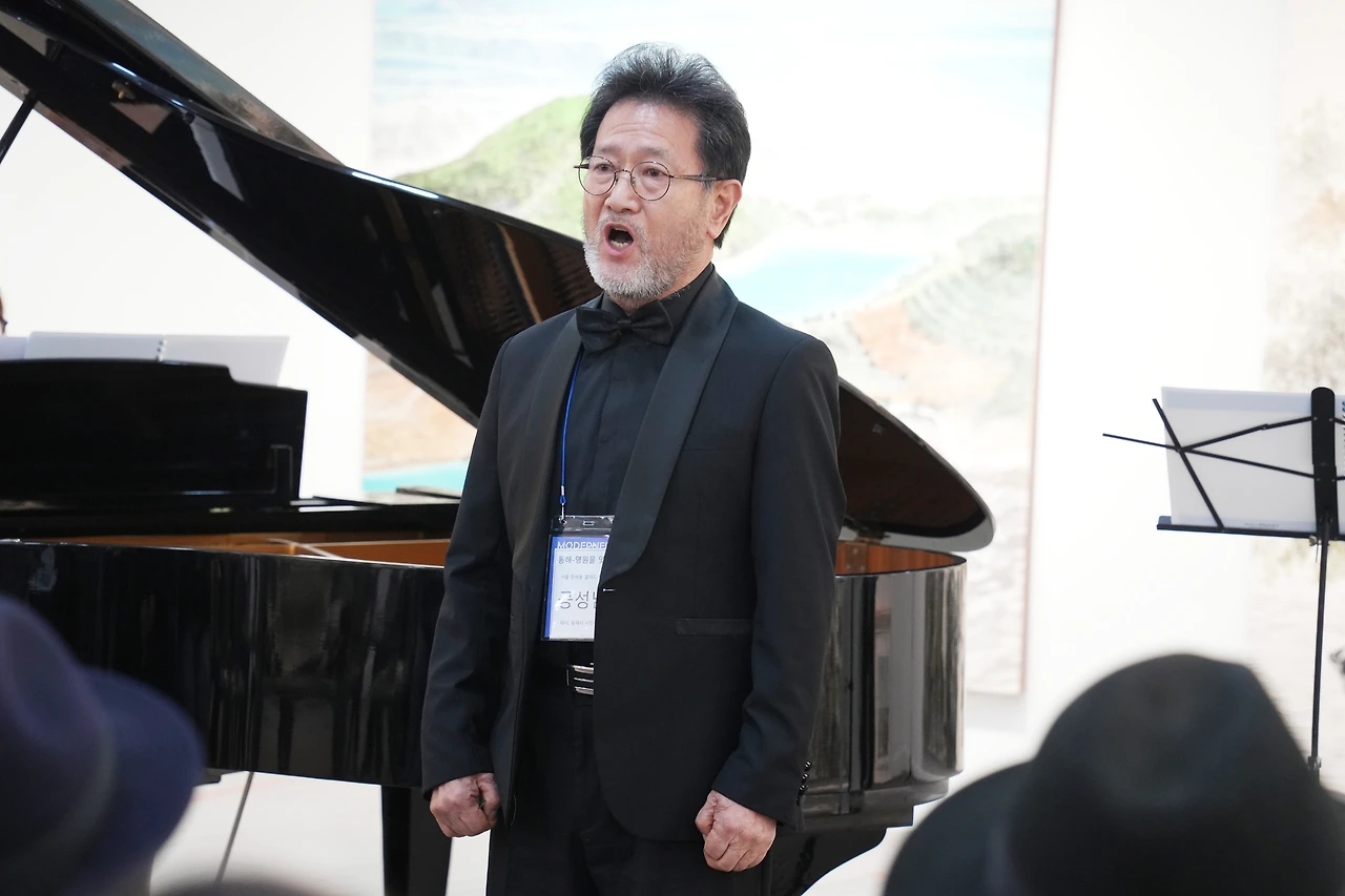 예배와 음악, 미술이 유기적으로 결합된 개막식은 그 자체로 하나의 작품 같았다. “붓의 획은 문자가 아니라 파동”이라는 김 작가의 미학을 반영하듯, 작은 음악회 ‘아트 플로우’는 작품 세계를 청각적으로 확장하는 역할을 했다. 동해시민 대표로 참석한 테너 공성남의 ‘눈’, 헨델의 ‘Largo(Ombra mai fu)’, 김희래 청년 바이올리니스트의 ‘차르다시’, 국립합창단 출신의 메조소프라노 김미경의 ‘그리운 금강산’,과 ‘O sole mio’ 등으로 이어진 연주는 여백과 호흡, 절제와 해방이라는 키워드를 공유하며 김 작가의 화면과 자연스럽게 호응했다.