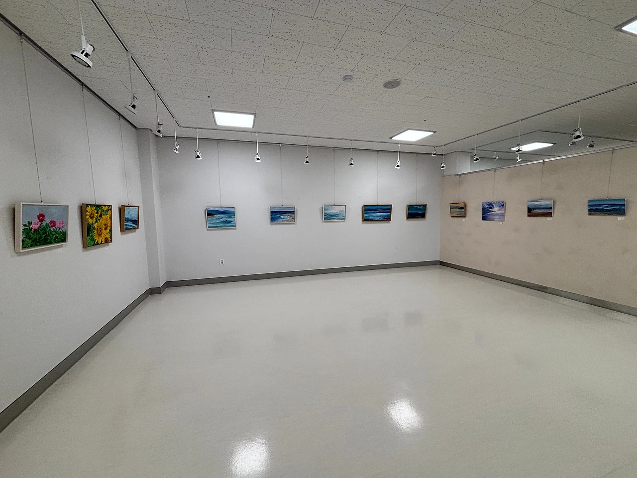 전시장 벽면을 따라가다 보면 푸른 바다의 파노라마가 펼쳐진다. 추암, 어달, 대진 등 동해안을 따라 걷다 보면 마주칠 법한 익숙하고도 정겨운 풍경들이 캔버스 위에 고스란히 옮겨져 있다.