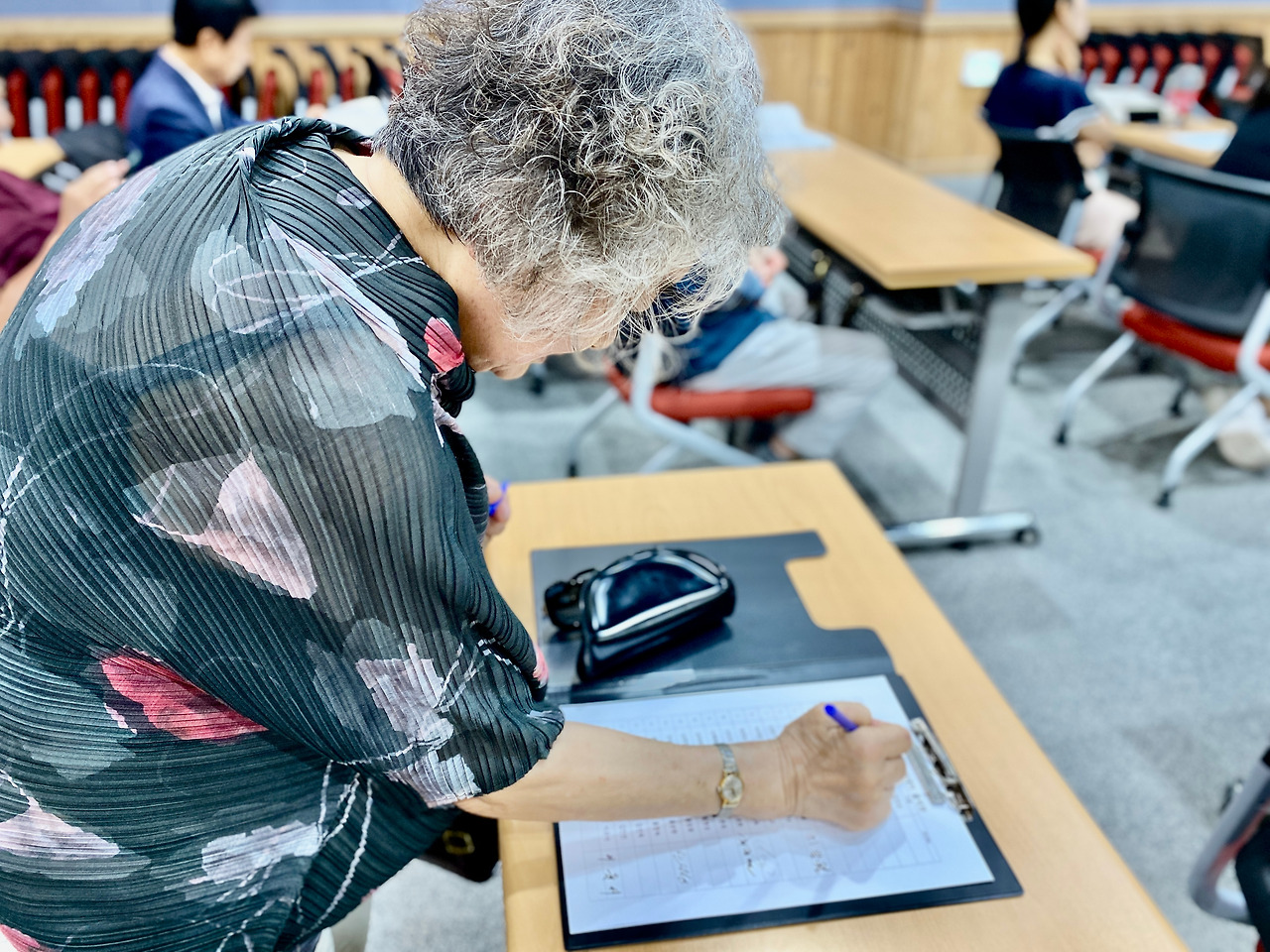 동해문화원 운영 <동해학 아카데미 문화학당>에 만학도로 참여하는 할머니다. 올해 86세의 김순자 할머니가 주인공이다. 문화학당 개강 이후 3년간 한주도 쉬지 않고 맨 앞줄에서 강의를 듣고 공부하는 할머니로 아마도 지금까지 3년간 들은 강의 수만도 나이 86을 훨씬 넘을 듯하다. 김 할머니는 강의흡수도 빠르고 해박한 지식으로 수강생 중에서 질문도 가장 많이 하기로 소문나 있다.