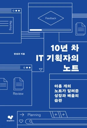 이 책은 나의 소중한 경험담이다. 남들이 알만한 유명한 기획자나 PM도 아니고 화려한 이력이나 배경이 있는 것도 아니지만, 누구보다 많은 경험을 혼자 힘으로 해왔다. 앞으로도 이 경험이 나를 좀 더 우수한 기획자로 그리고 관리자로 만들어 줄 것이다. 이 책이 여러분에게 “기획자로 일하는 것”에 대한 작은 마중물이 되었으면 좋겠다.