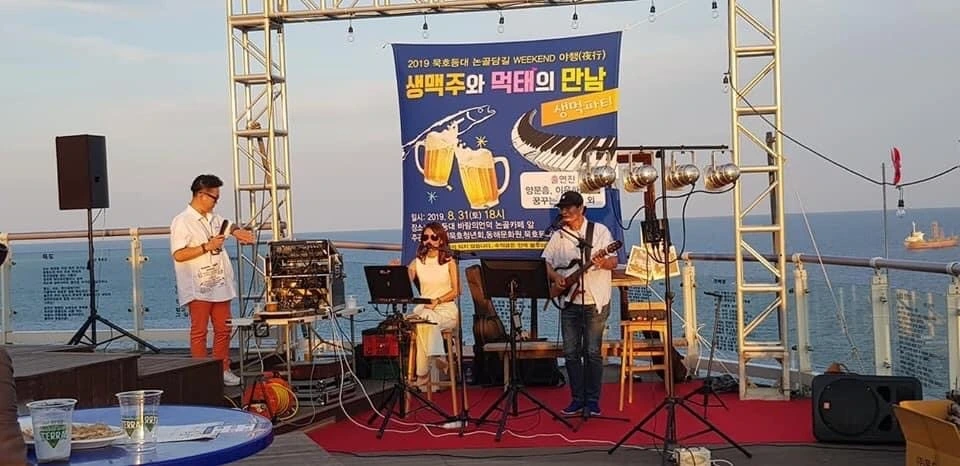어시장 인근 묵호 119 지구대 자리에서 긴 세월 묵호와 이웃 신사들의 사랑방 역할을 담당한 ‘나포리 다방’의 역사를 재현해 본 ‘추억의 음악다방‘은 DJ 출신인 필자가 음악방송을 담당했다. 포크 가수 둘다섯, 연리지, 오카리나 심재춘, 바이올리니스트 장주미, 꿈꾸는 사람들 등 가수와 토크쇼 형태 프로그램으로 2018년부터 진행했다. 2019년 8월에 개최한 ‘논골담길 야행! 먹맥 위크앤드 페스티벌’ 은 지역 특산품 먹태와 아름다운 묵호 야경을 알리기 위해 동해문화원과 묵호 청년회의소가 공동으로 개최했다. 행사내용은 먹태이야기와 퀴즈 풀기, 음악회 진행으로 호평을 받았다. 당시 프로그램 주요 출연진들은 묵호와 논골담길을 어떤 느낌으로 기억하고 있는지 카카오톡 인터뷰로 들어본다.