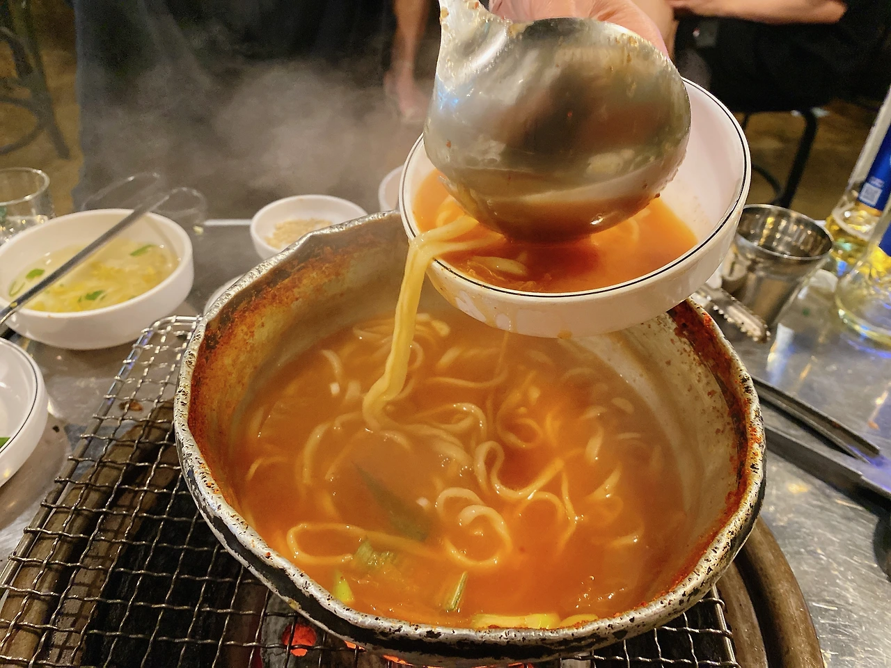 소금구이 꼼장어 4인분으로 시작한 꼼장어 파티는 돼지껍질과 얼큰 김치 칼국수로 어어졌다. 껍질도 냄새 없이 맛있었고 얼큰 김치 칼국수는 묵은 김치와 장을 풀어 특별한 맛을 내게 했고 기름으로 얼룩진 입안을 청소하듯 식사 겸 마지막 안주로 딱이었다.