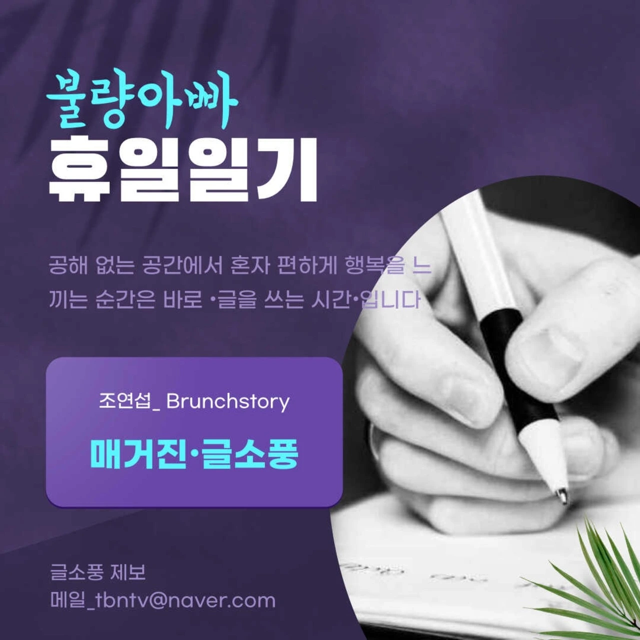 30년 전 한국효도회 회장을 통해 “효의 근본은 문안인사”라고 들었다. 최근 시작한 새로운 미션 2일에 한번 부모님 문안인사 올리는 시간이다. 어머니께 전화를 올렸다. 서울 은빈, 동해 수빈이 조카들이 공무원 합격했다고 좋아하신다. 공무원 합격에 저리 기뻐하시는데 판 검사 합격자가 나온 집안 기쁨은 상상에 맡기겠다. 모두 평생 나눔과 배려를 실천하신 어머님 복이라고 했다. 정리하던 브런치스토리 매거진 글소풍 오늘 이야기를 마무리할 시간이다. 날이 밝으면 불량아빠의 일상은 변함없이 시작하겠지만 부담 없이 일상을 정리하고 글을 쓰는 이 시간이 행복하다.