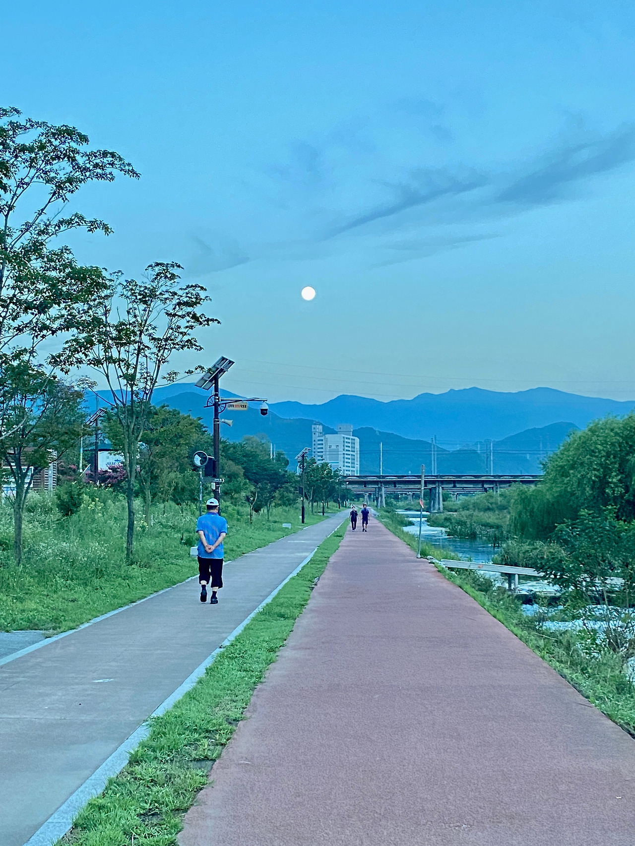 지난밤 2년 8개월 만에 찾아온 블루문, 평소보다 2만 8천 km 정도 더 가까운 곳으로 찾아온 <슈퍼 블루문>은 31일 밤 10시 36분 때가 가장 둥근 때였다. 블루문은 1일 아침 동해 전천을 벗어나지 못하고 못내 아쉬운 듯 날을 지세고 화이트문으로 동해의 아침을 열었다. 심규언 동해시장, 강성필, 김종문 동해문화원 이사님 등 평소 지인 여러분도 이른아침 산책에 나서 이번 슈퍼 블루문의 마지막 생을 동해 전천과 함께 했다.