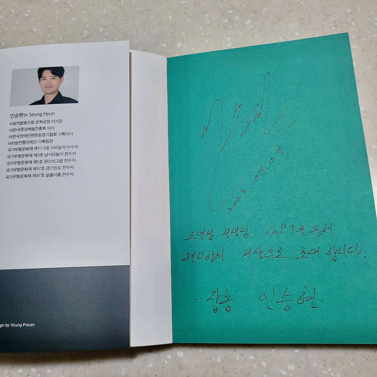 강릉에 도착 주차장으로 이동해 키오스크에서 주차요금을 계산하고 동해로 출발했다. 바쁜 일도 없고 바다를 보면서 가자고 정동진 방향의 국도 지방도로 동해로 달렸다. 잠시 후 동해에 도착 잠시 쉬다가 행사장에서 선물 받은 기획자 인승현이 지은 <공연기획자의 챗GPT활용법> 책을 읽고 소감문을 작성하고 브런치 발행을 준비하고 하루를 마감했다. 이번 출장에서 의미 있었던 일은 멋진 기획자 인승현 씨를 만난 일이다. 그가 쓴 활용법이 대한민국 문화기획자를 꿈꾸는 친구들에게 멋진 교본이 되기를 바라본다.