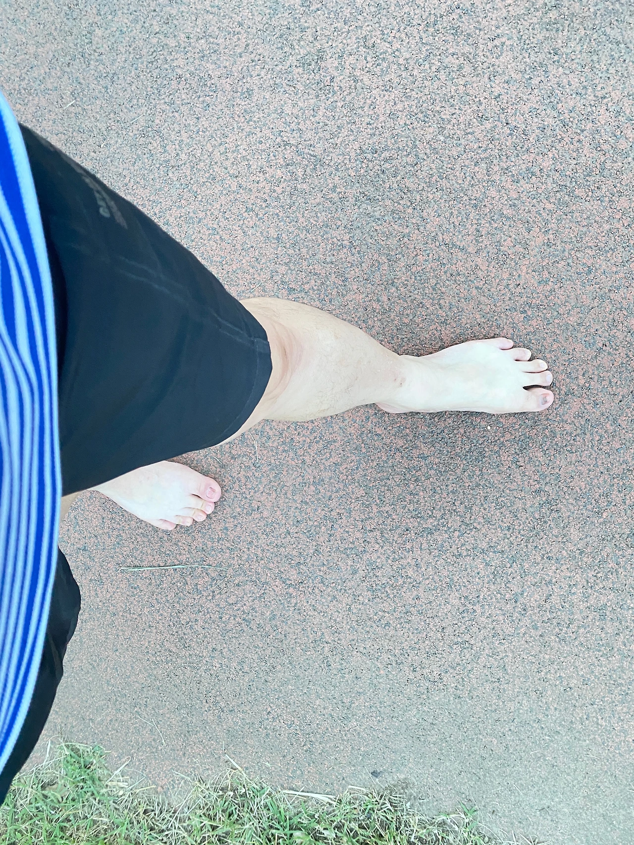 맨발 걷기에 도전했다. 태초부터 사람은 맨발로 태어났다. 그리고 맨발로 걸었다. 그러나 사회가 변하면서 우리는 짚신, 고무신, 운동화, 구두 등 다양한 신발을 신게 되었고 발은 퇴화되기 시작했다. 발 전체가 움직이는 신발을 신은채 걷는 것과 부분 근육의 움직임으로 걷는 맨발로 걷는 것과 효과는 큰 차이가 있다고 전문가들은 말한다. 맨발 걷기 첫날은 40분 정도였으며 스쿼트와 스트레칭을 마치고 돌아오는 길은 신발을 신고 걸었다. 맨발 걷기 첫날부터 많이 걷는 건 무리라는 생각이 들었다. 평소 약 10년 이상 늘 걷던 길이고 흙길이 아니었다는 아쉬움은 남는다. 맨발 걷기 첫 느낌은 발 등 근육의 약간의 가려움이 있고 하체와 전신의 느낌이 맑아지는 듯하고 기분이 상쾌하다
