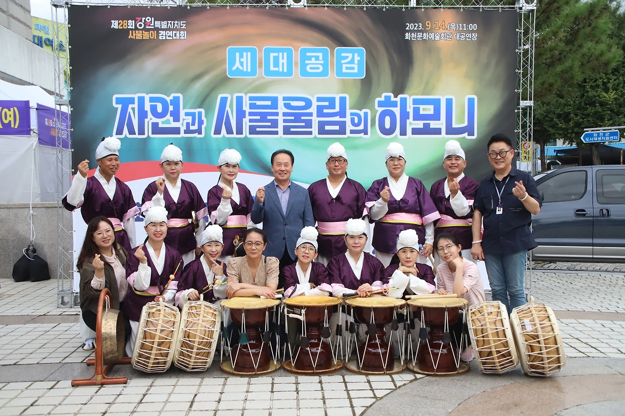 강원특별자치도 문화원연합회는 14일 화천문화예술회관에서 <제28회 사물놀이경연대회>를 개최했다. 강원특별자치도문화원연합회 박주선 회장, 한국문화원연합회 김태웅 회장, 도 현금서 문화유산과장, 도내 18개 지역문화원 원장들이 자리한 가운데 오전 11시 2021년도 우승팀 평창문화원 <터 울림픽, 평창!>의 식전공연으로 시작됐다. 이 팀은 특히 권혜진 문화원사무국장이 직접 상쇠로 참여 박수를 받기도 했다.