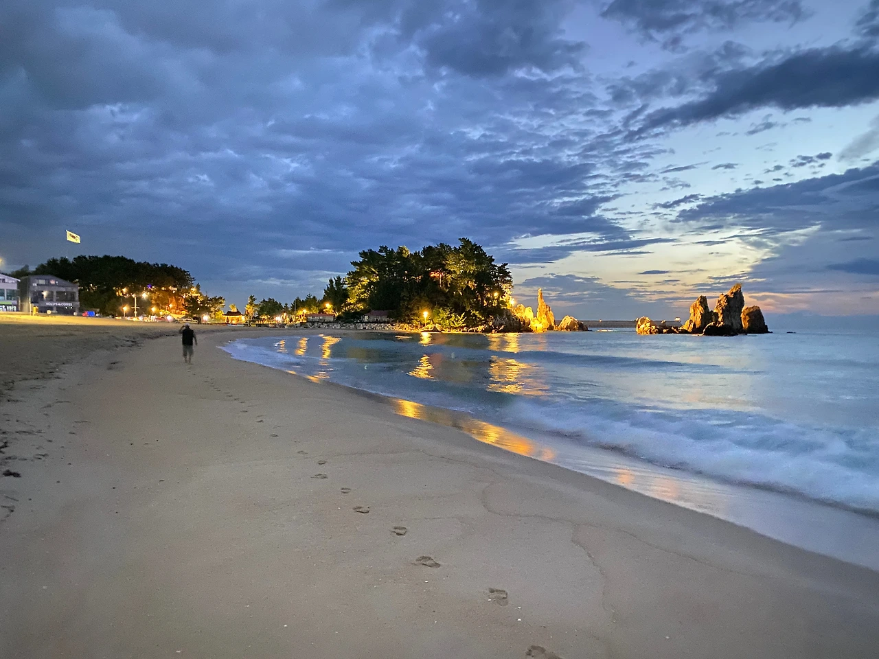 평소 집이나 걷기 코스에서 병행하던 하체운동 <스쿼터>나 종아리 운동 <카프 레이즈> 등도 불편하지만 평평하고 딱딱한 부분 백사장을 찾아 직접 해결한다. 혹시 이 글을 보고 추암해변 백사장을 걷고 모래 걷기를 체험하고 싶은 분들은 아침 5시 30분에서 6시 내외의 시간에 추암에 오시면 일주일 4회 이상은 필자를 만날 수 있다.